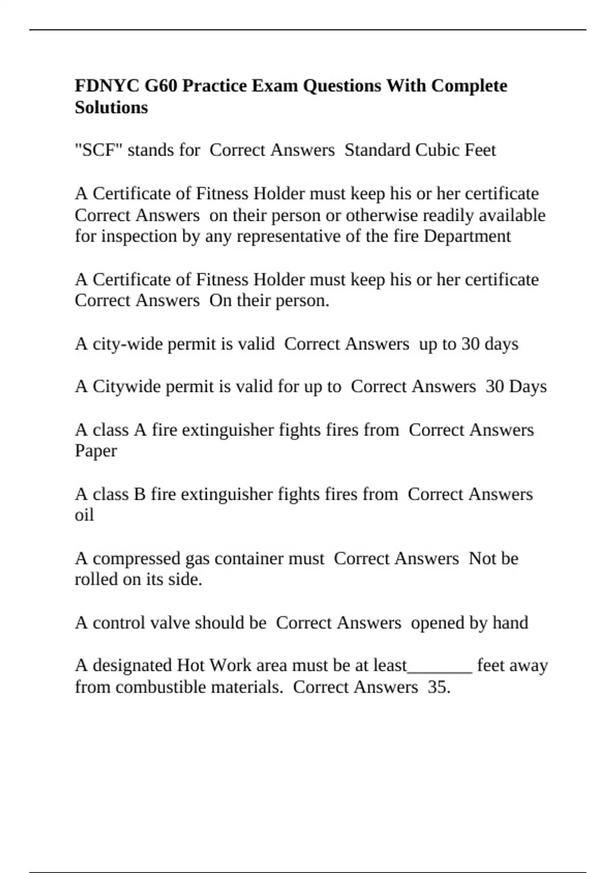 Correct Answers 400 scf