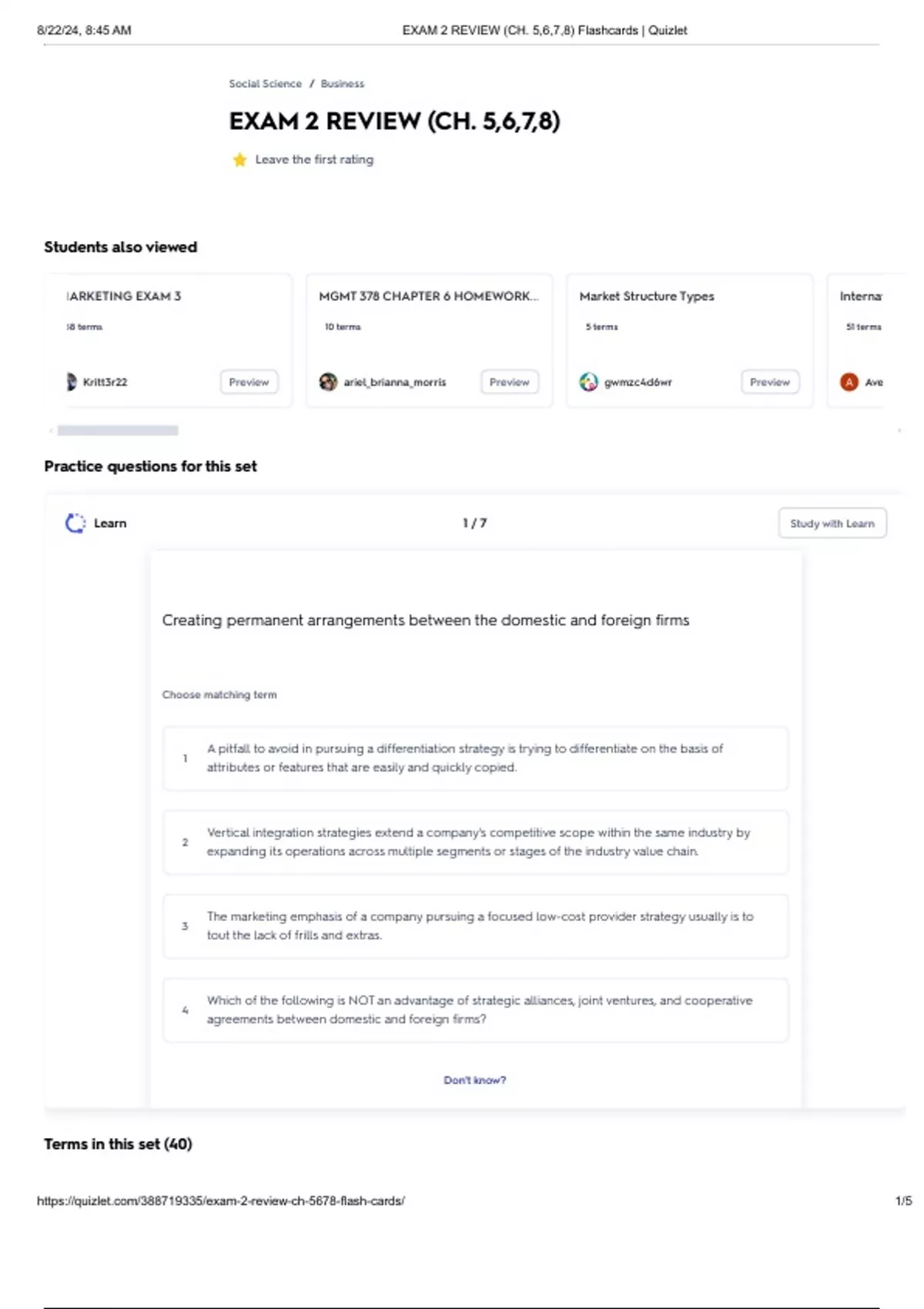 Practice questions for this set
