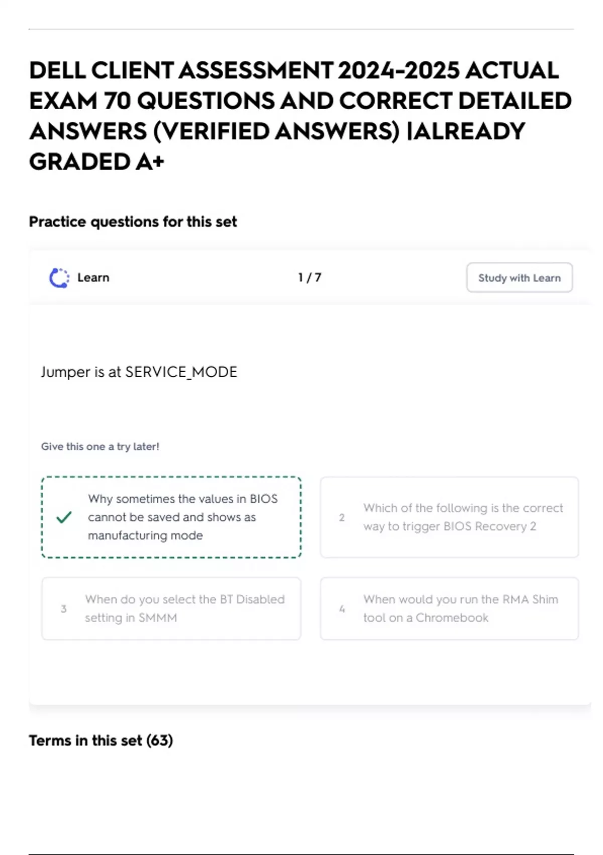 DELL CLIENT ASSESSMENT ACTUAL EXAM 70 QUESTIONS AND CORRECT DETAILED ANSWERS (VERIFIED ANSWERS) |ALREADY GRADED A+