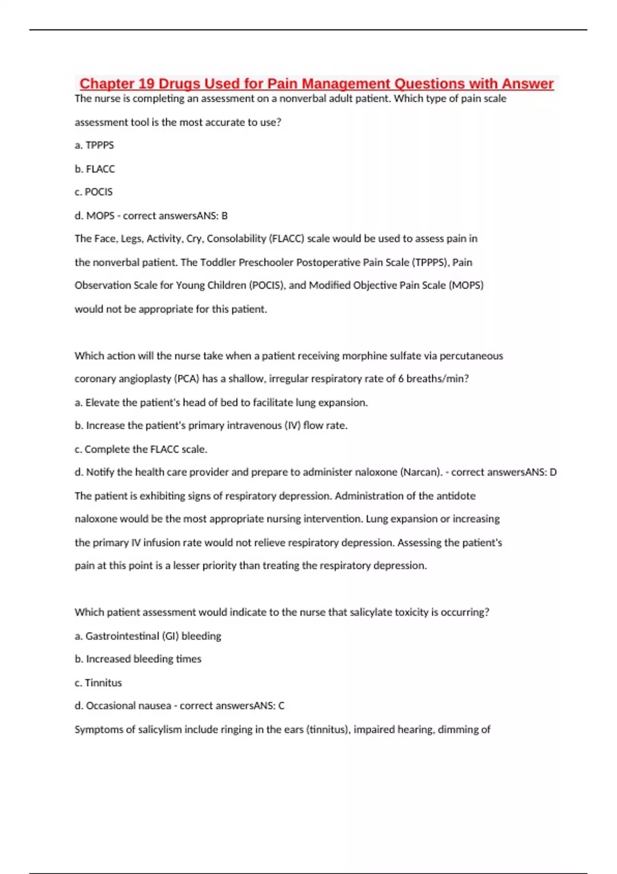 d. "A therapeutic blood level must be established with Tylenol." - correct answersANS: C