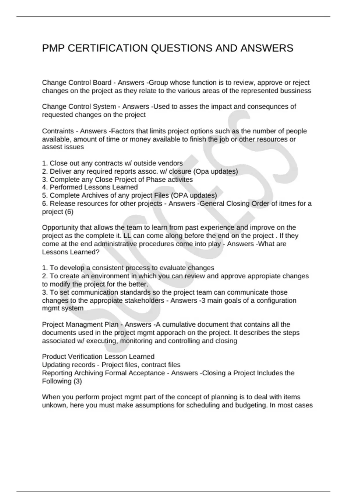 PMP CERTIFICATION QUESTIONS AND ANSWERS