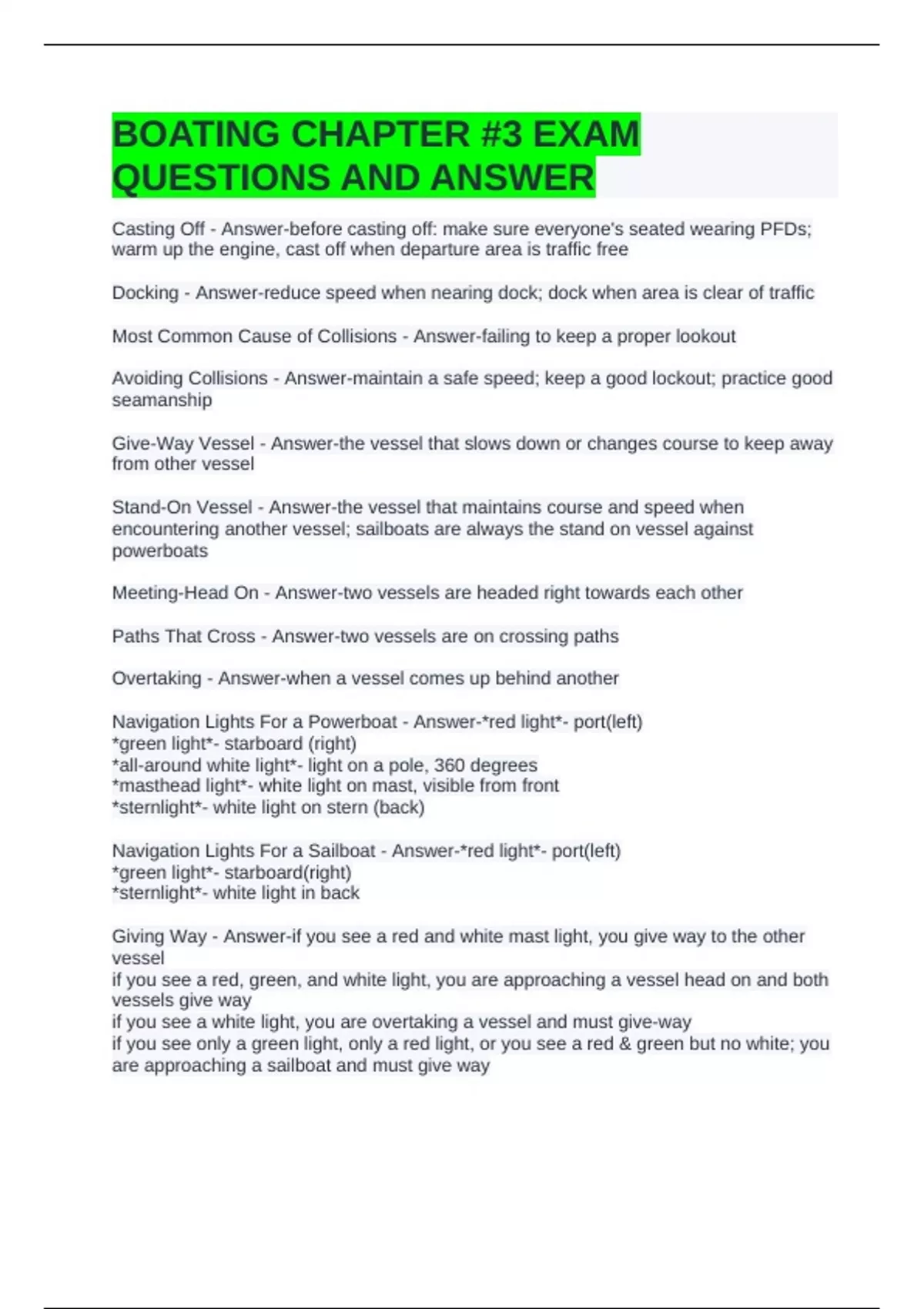 BOATING CHAPTER #3 EXAM
