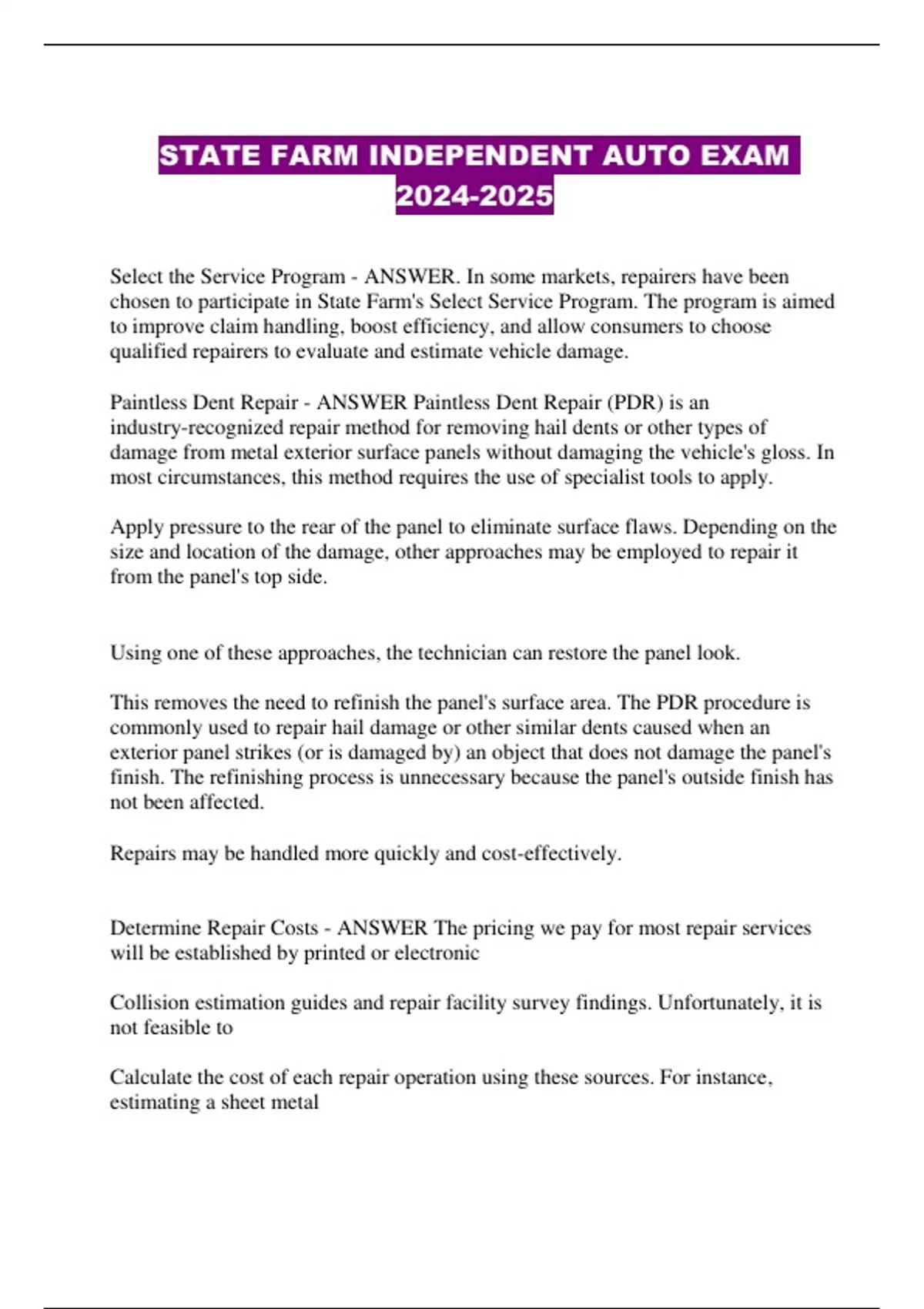 Determine Repair Costs - ANSWER The pricing we pay for most repair services