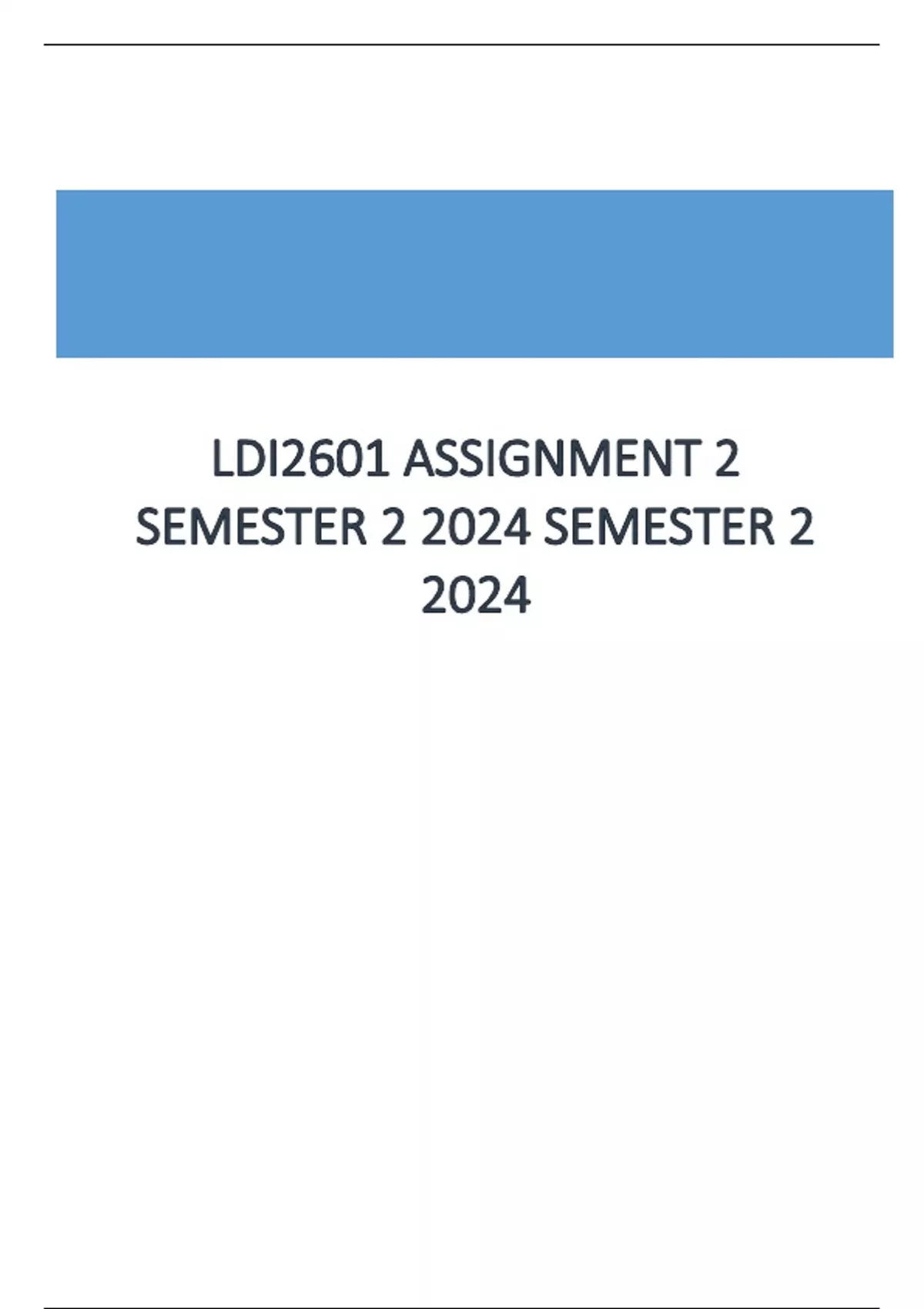 LDI2601 Assignment 2 Full Solutions Semester 2 2024 ;100 % TRUSTED workings, Expert Solved, Explanations and Solutions.