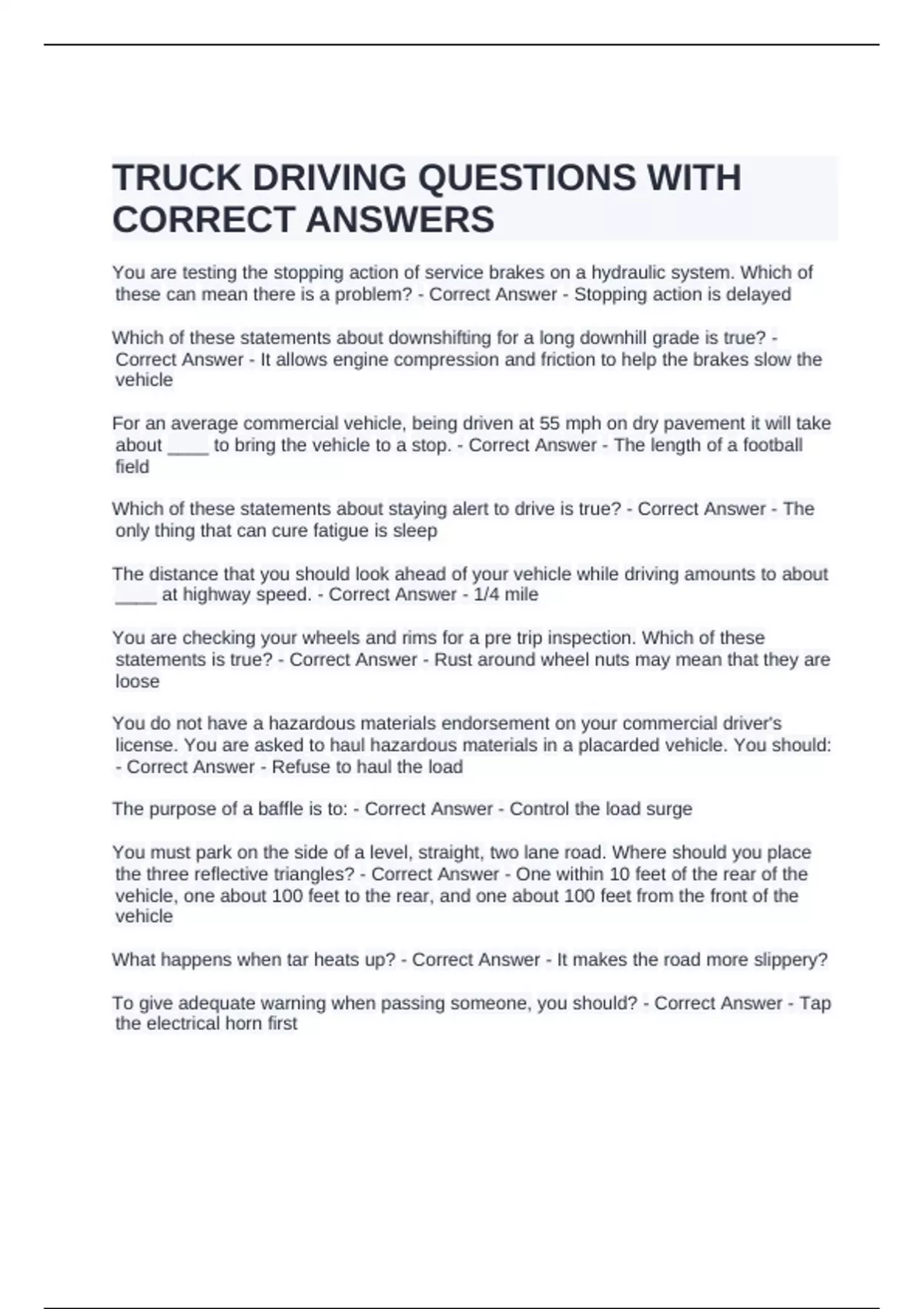 CORRECT ANSWERS