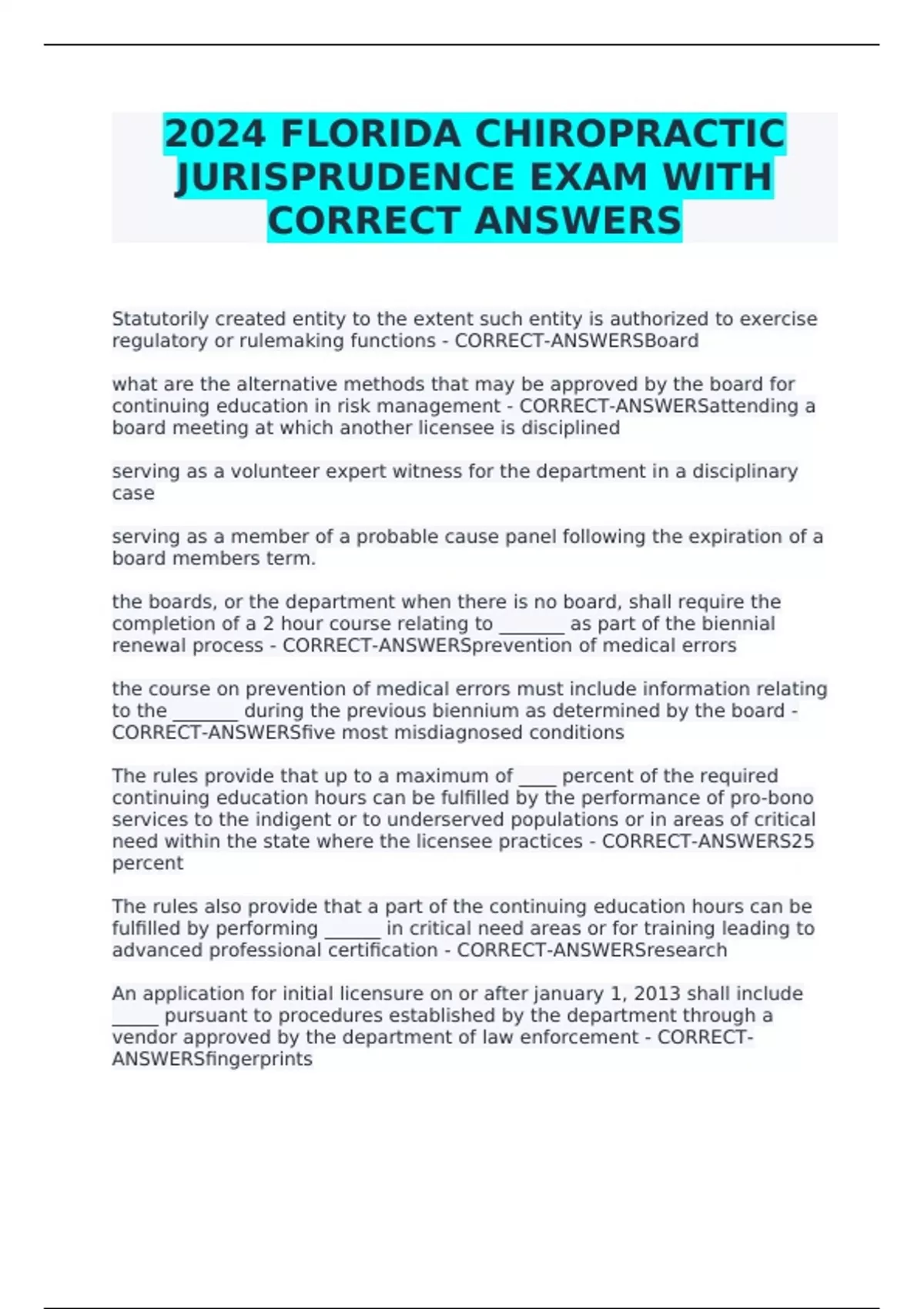 2024 FLORIDA CHIROPRACTIC JURISPRUDENCE EXAM WITH CORRECT ANSWERS