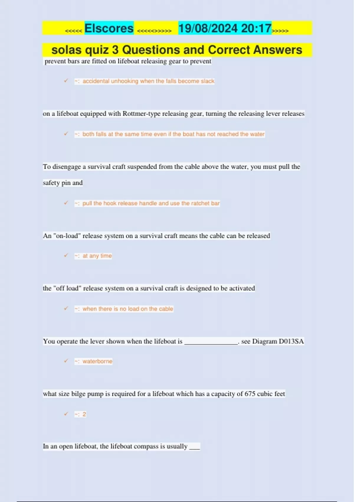 solas quiz 3 Questions and Correct Answers