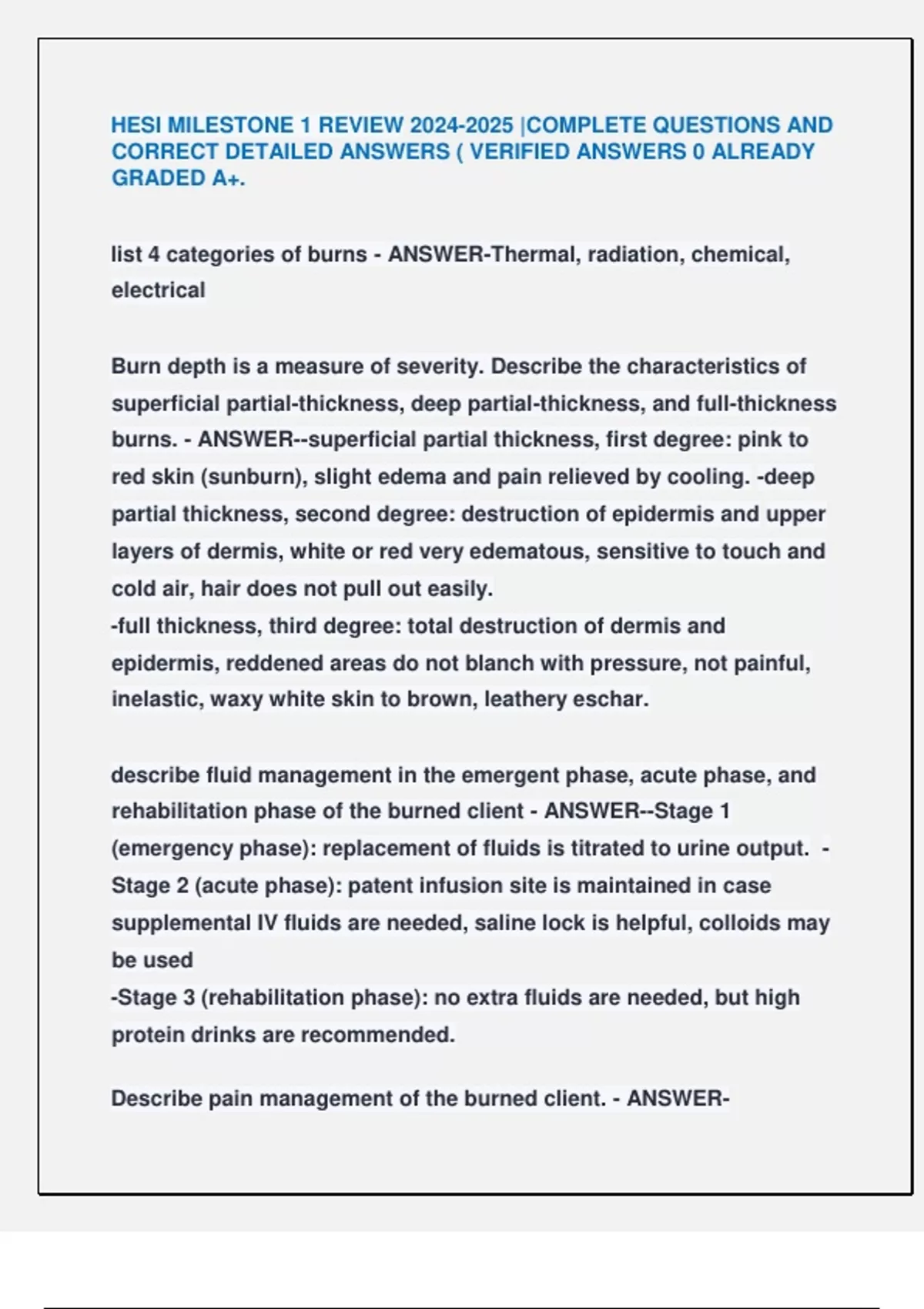 rehabilitation phase of the burned client - ANSWER--Stage 1