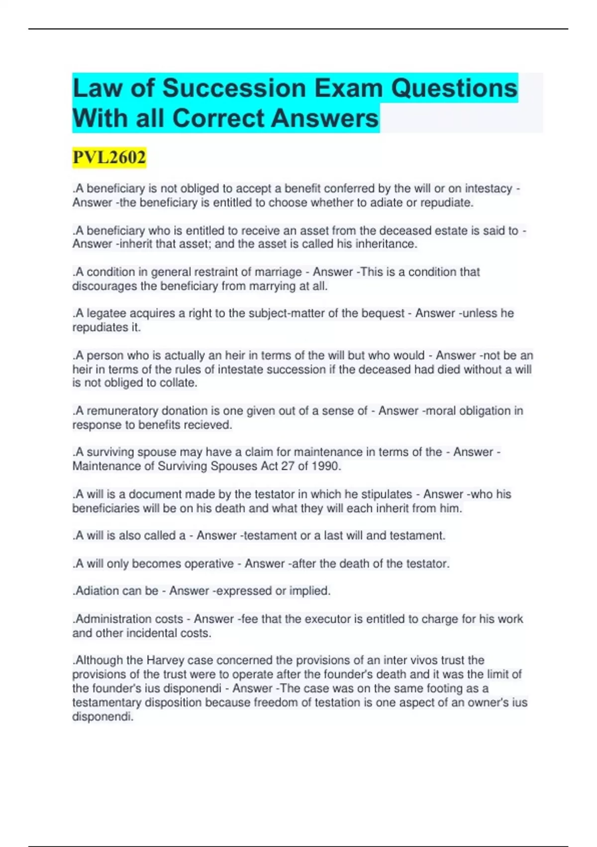 .Basic requirements for succession - Answer -The beneficiary must be designated as an