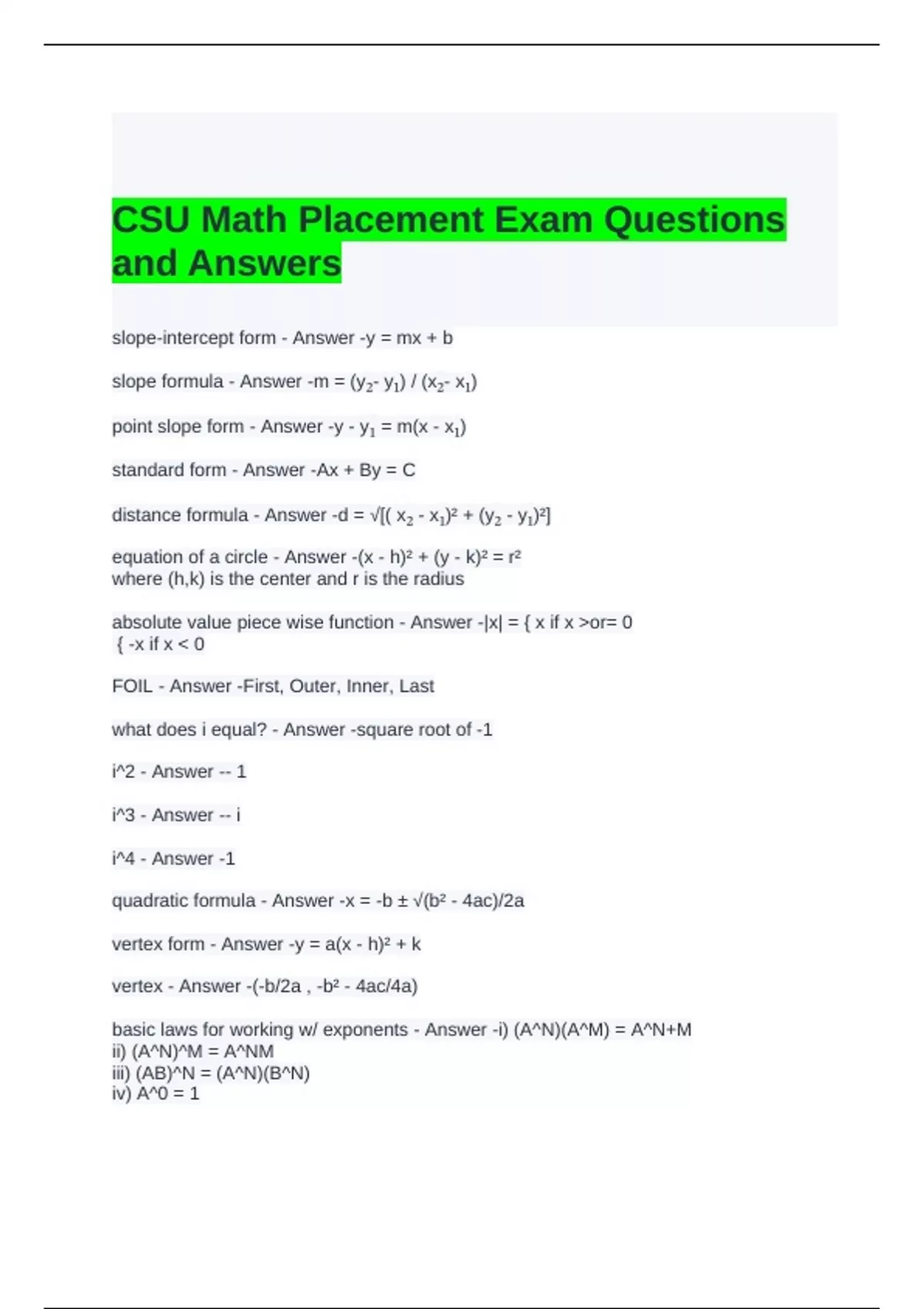 slope formula - Answer -m = (y₂- y₁) / (x₂- x₁)