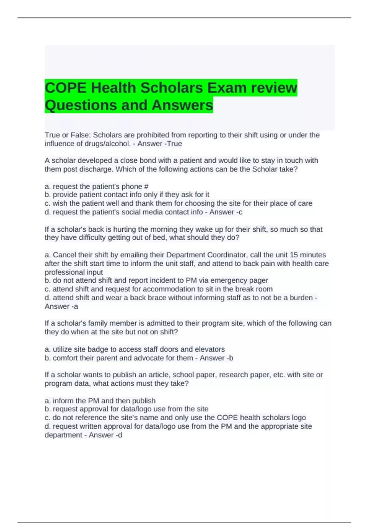 COPE Health Scholars Exam review