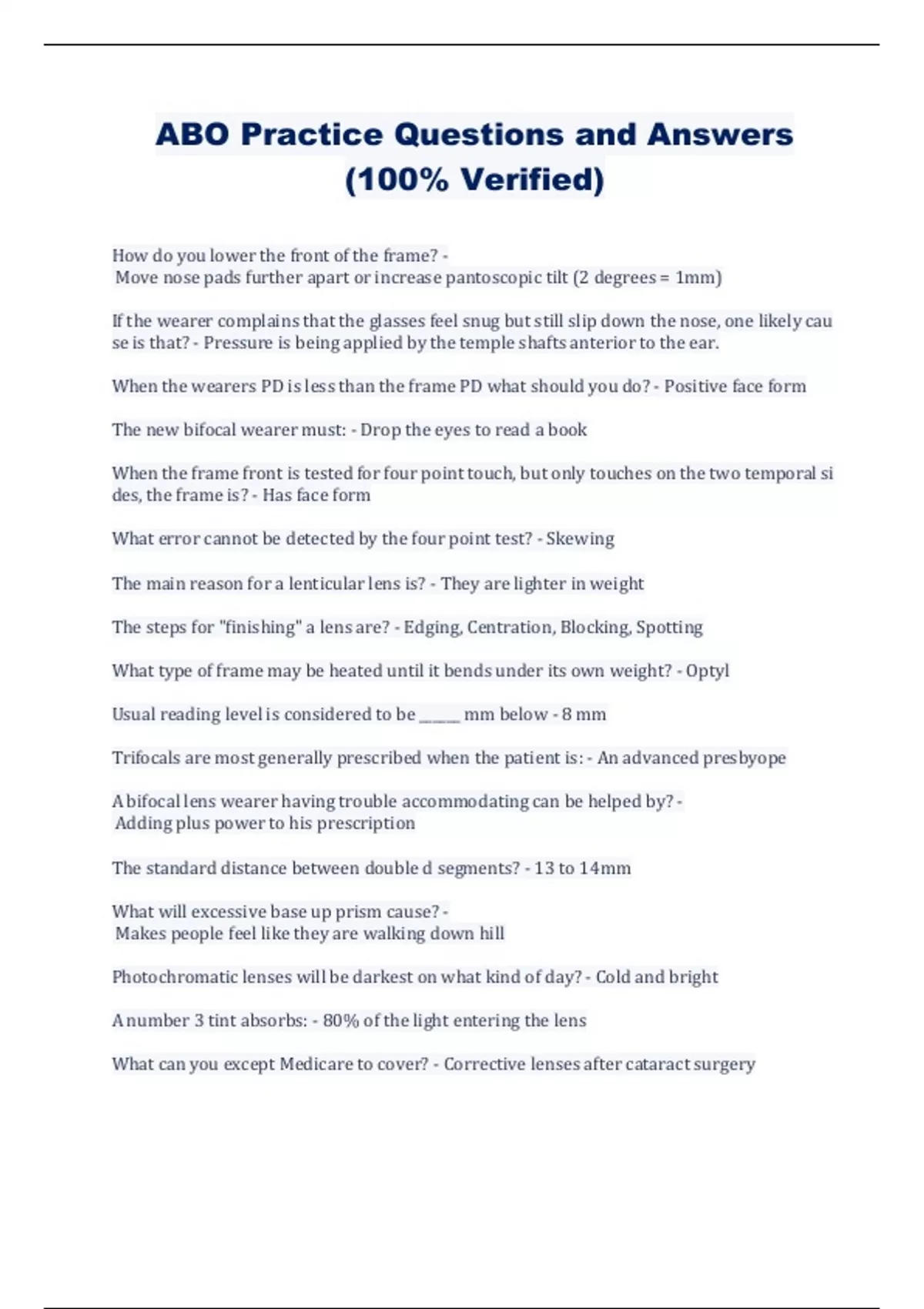 ABO Practice Questions and Answers (100% Verified)