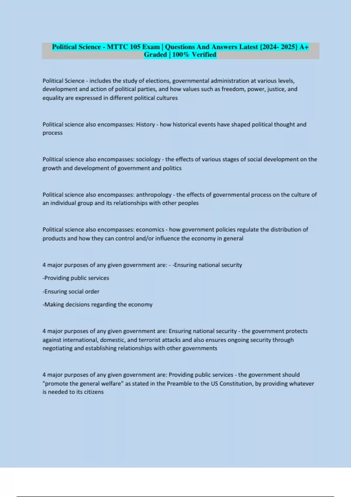 4 major purposes of any given government are: - -Ensuring national security