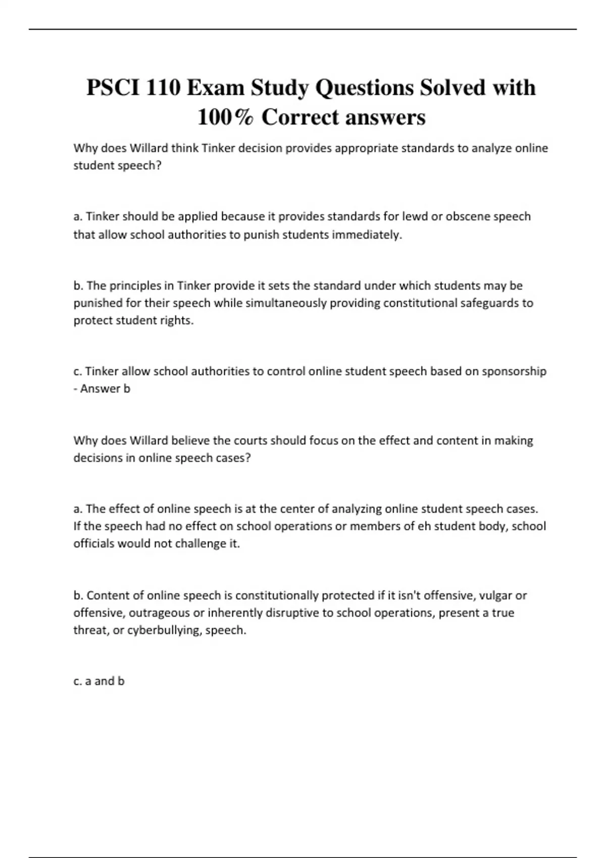 PSCI 110 Exam Study Questions Solved with 100% Correct answers