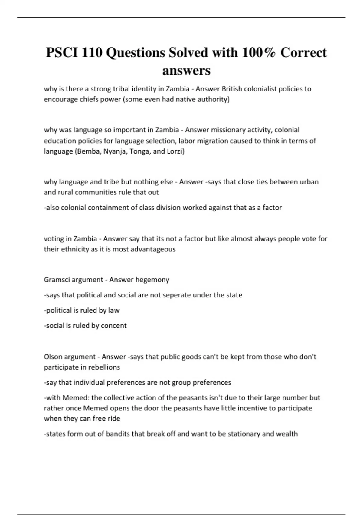 Gramsci argument - Answer hegemony