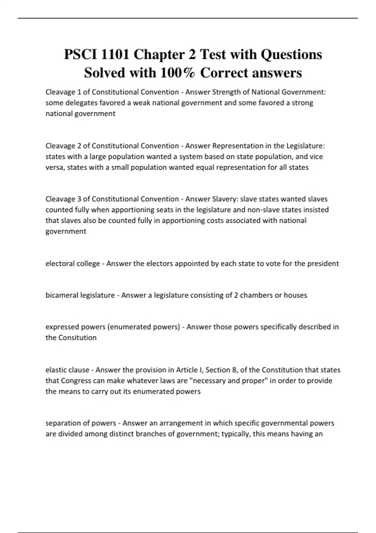 Cleavage 1 of Constitutional Convention - Answer Strength of National Government: