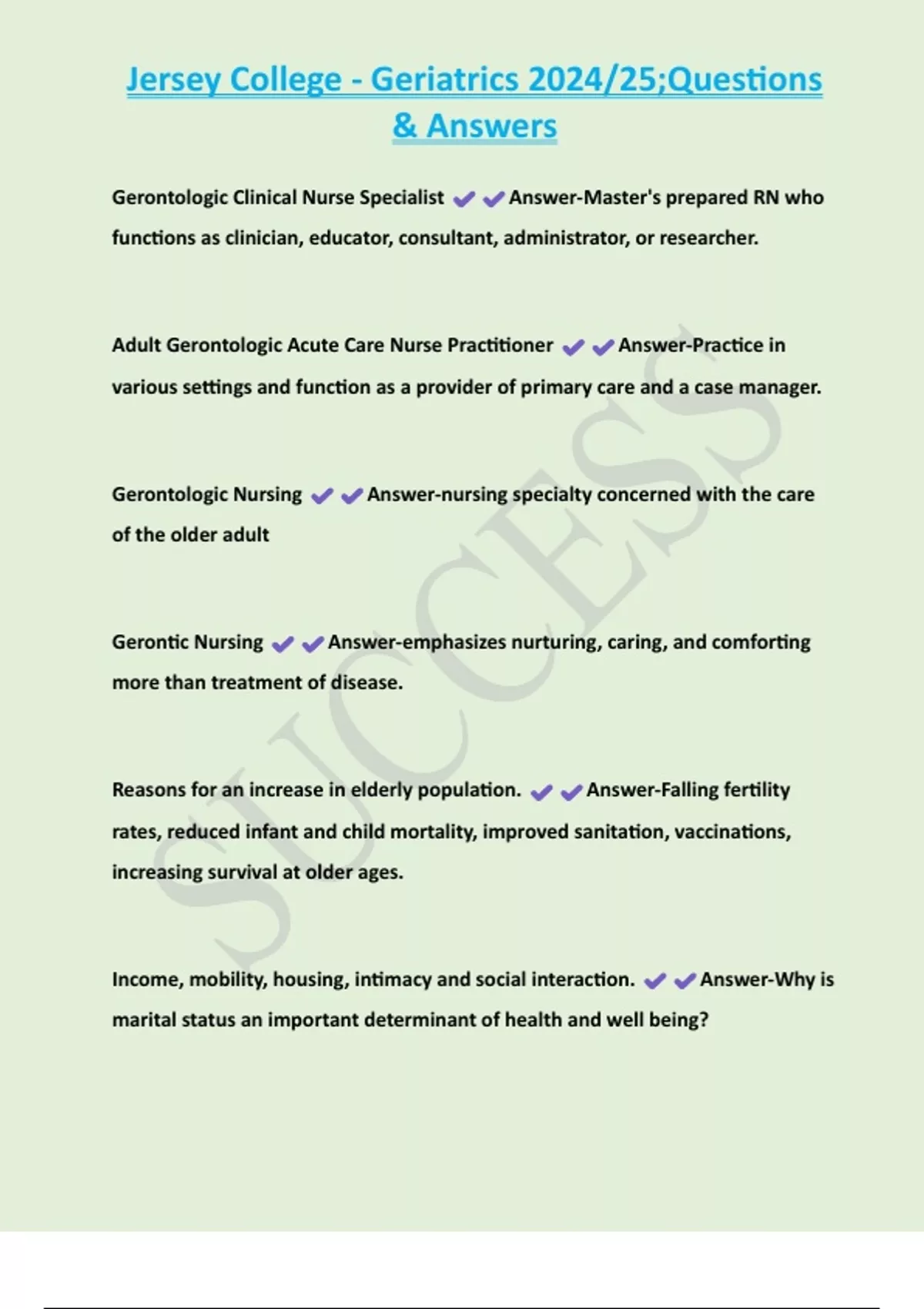 , Jersey College - Geriatrics 2024/25;Questions