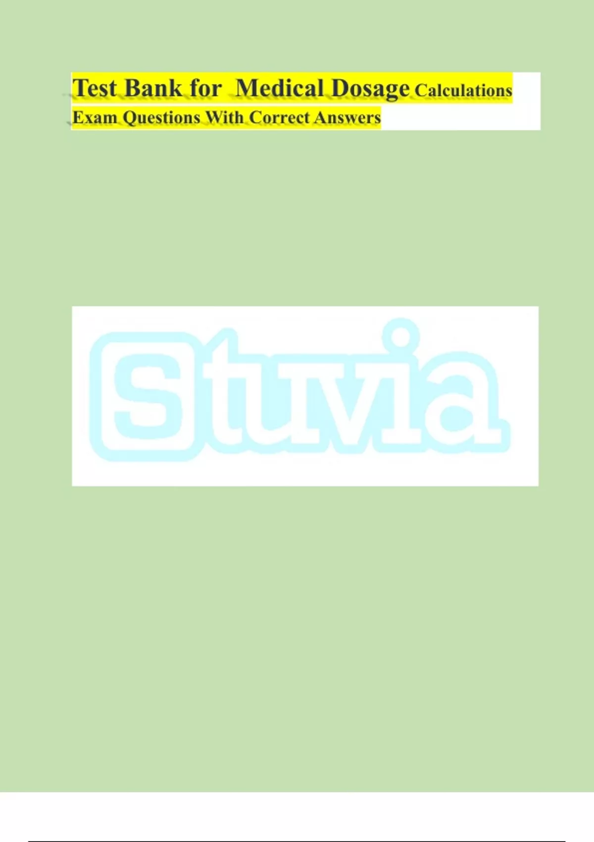 Test Bank for Medical Dosage Calculations Exam Questions With Correct Answers