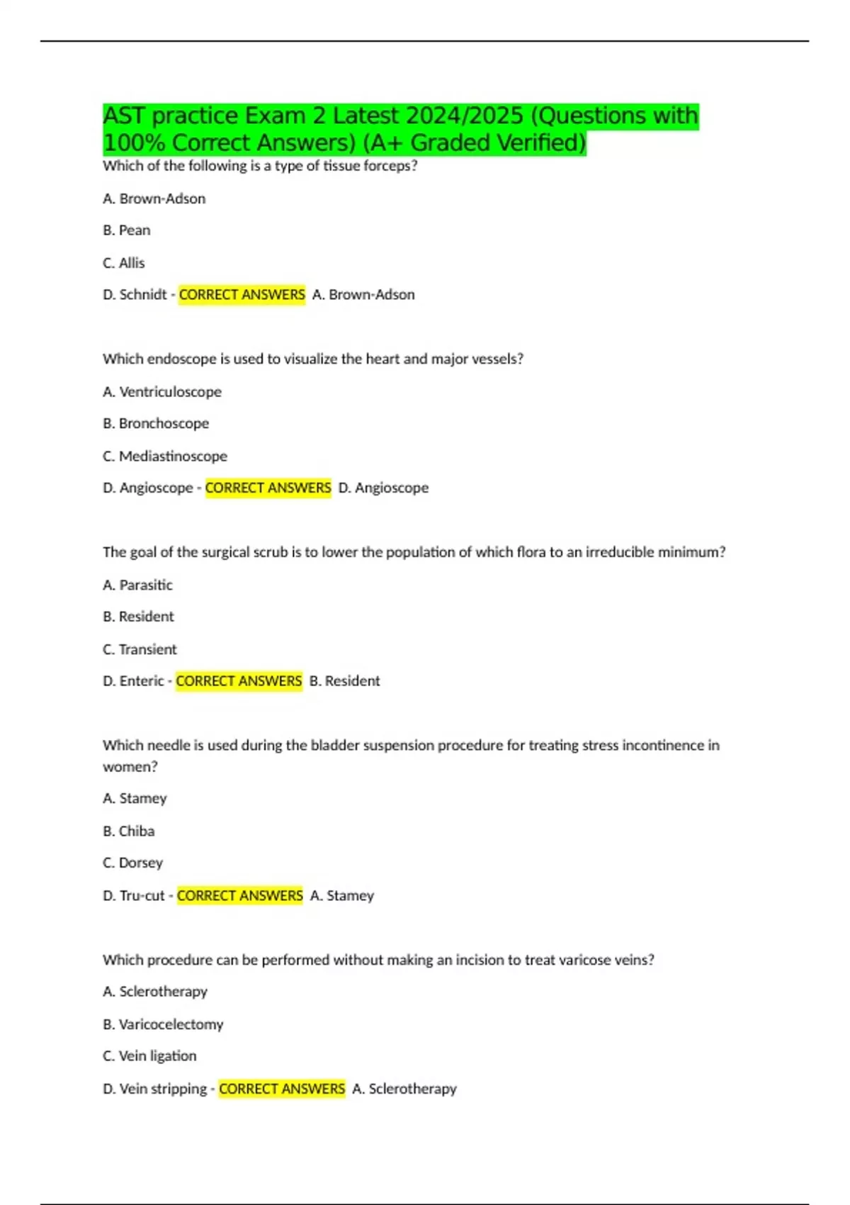 AST practice Exam 2 Latest 2024/2025 (Questions with