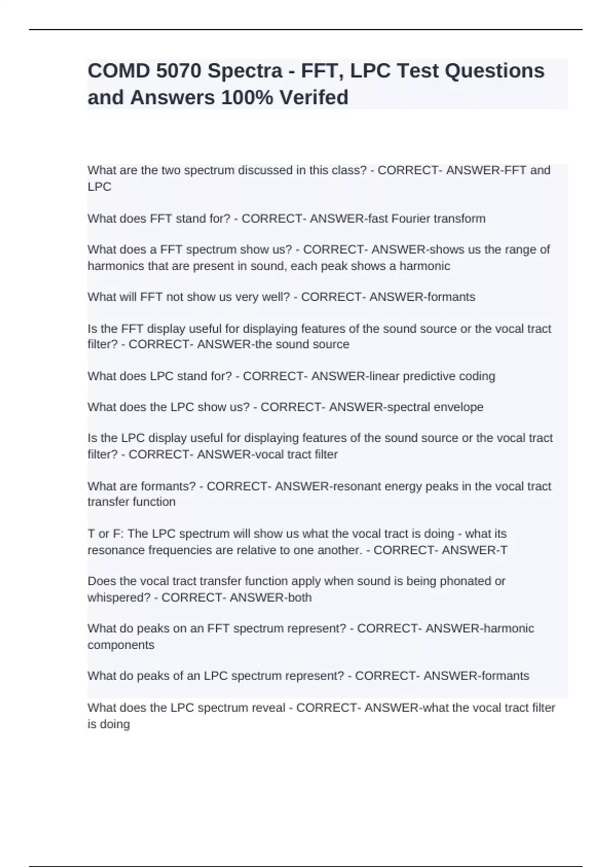 What will FFT not show us very well? - CORRECT- ANSWER-formants