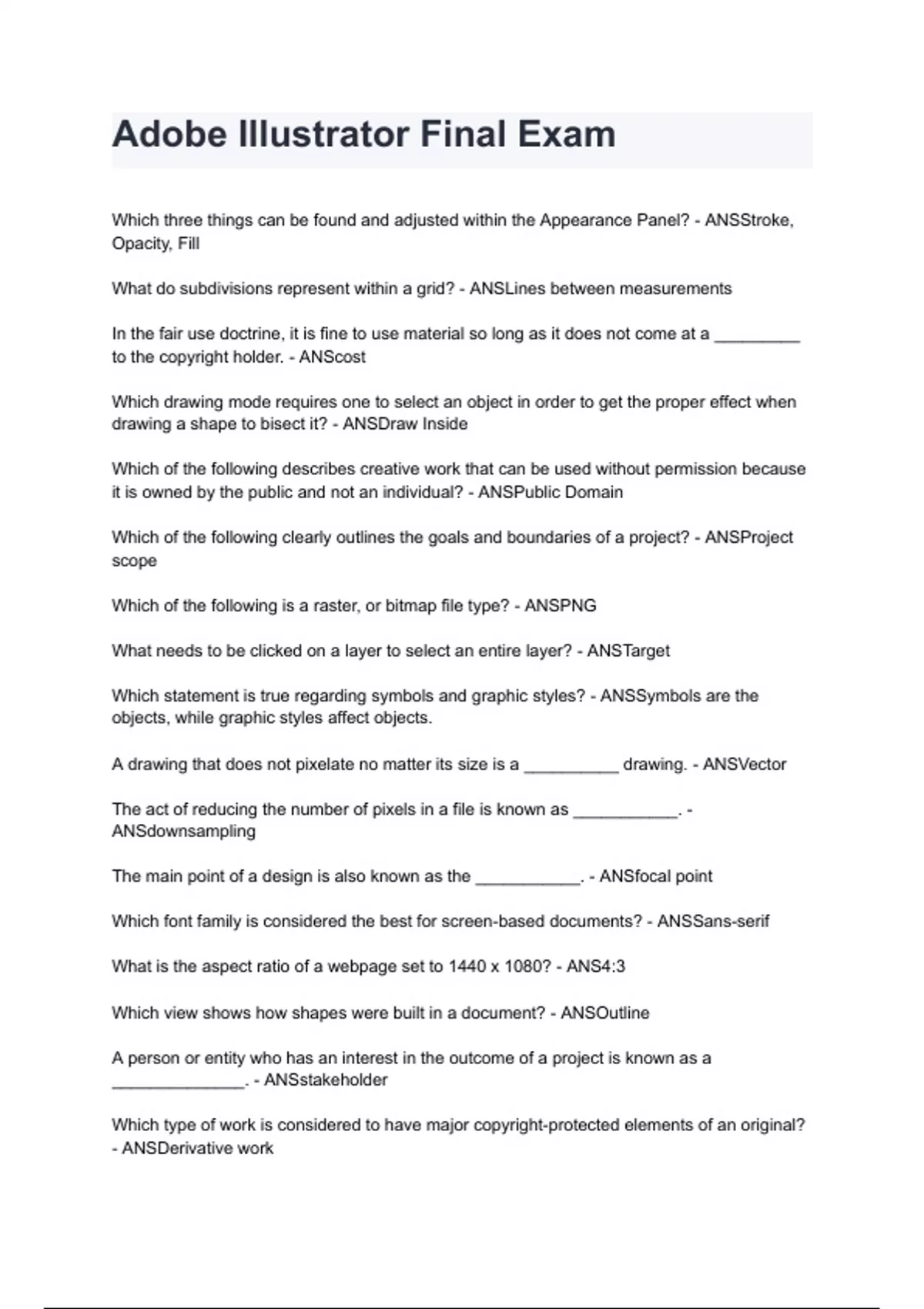 Resizing an artboard resizes the document it is on. (True or False) - ANSFalse