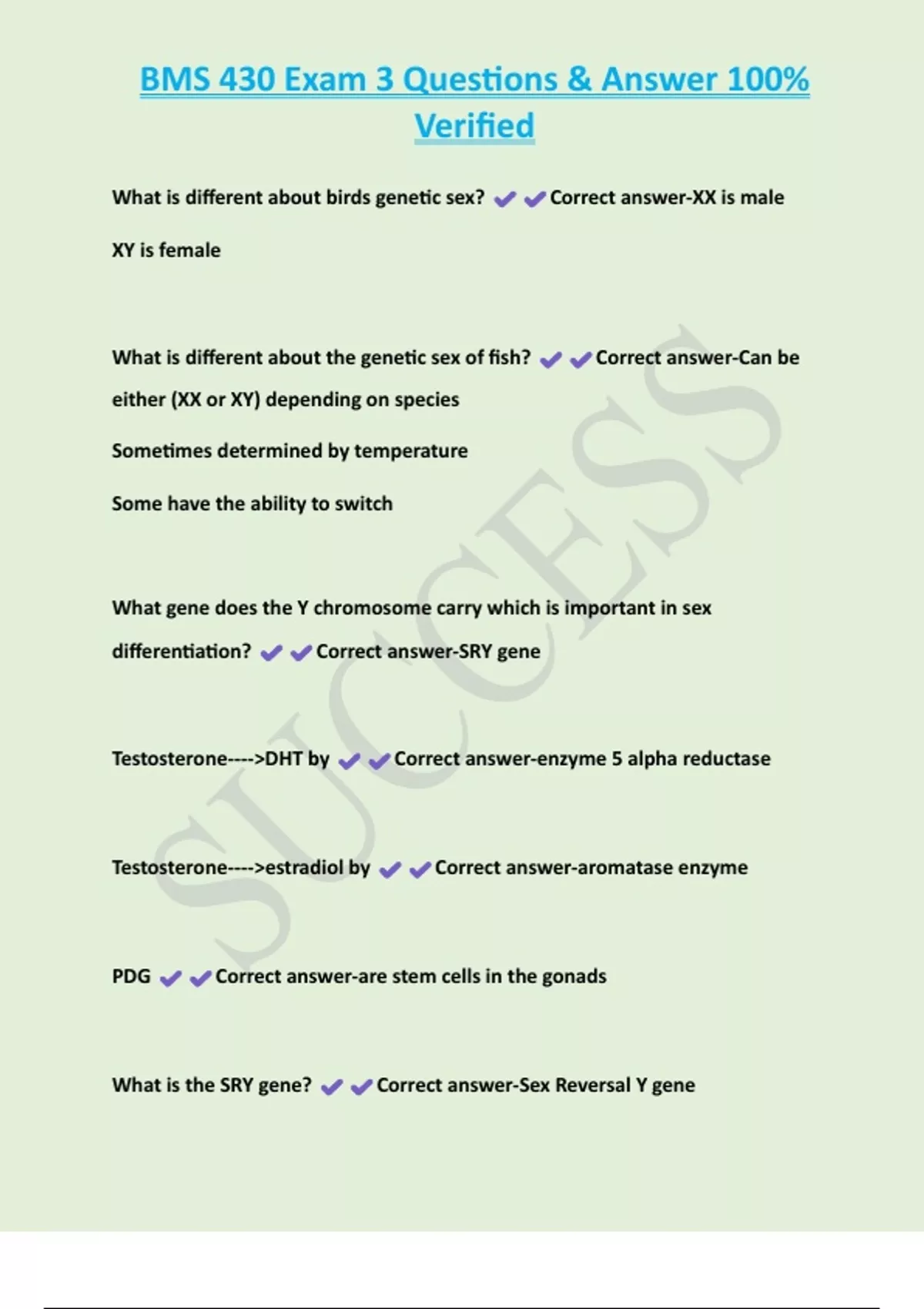 , BMS 430 Exam 3 Questions & Answer 100%