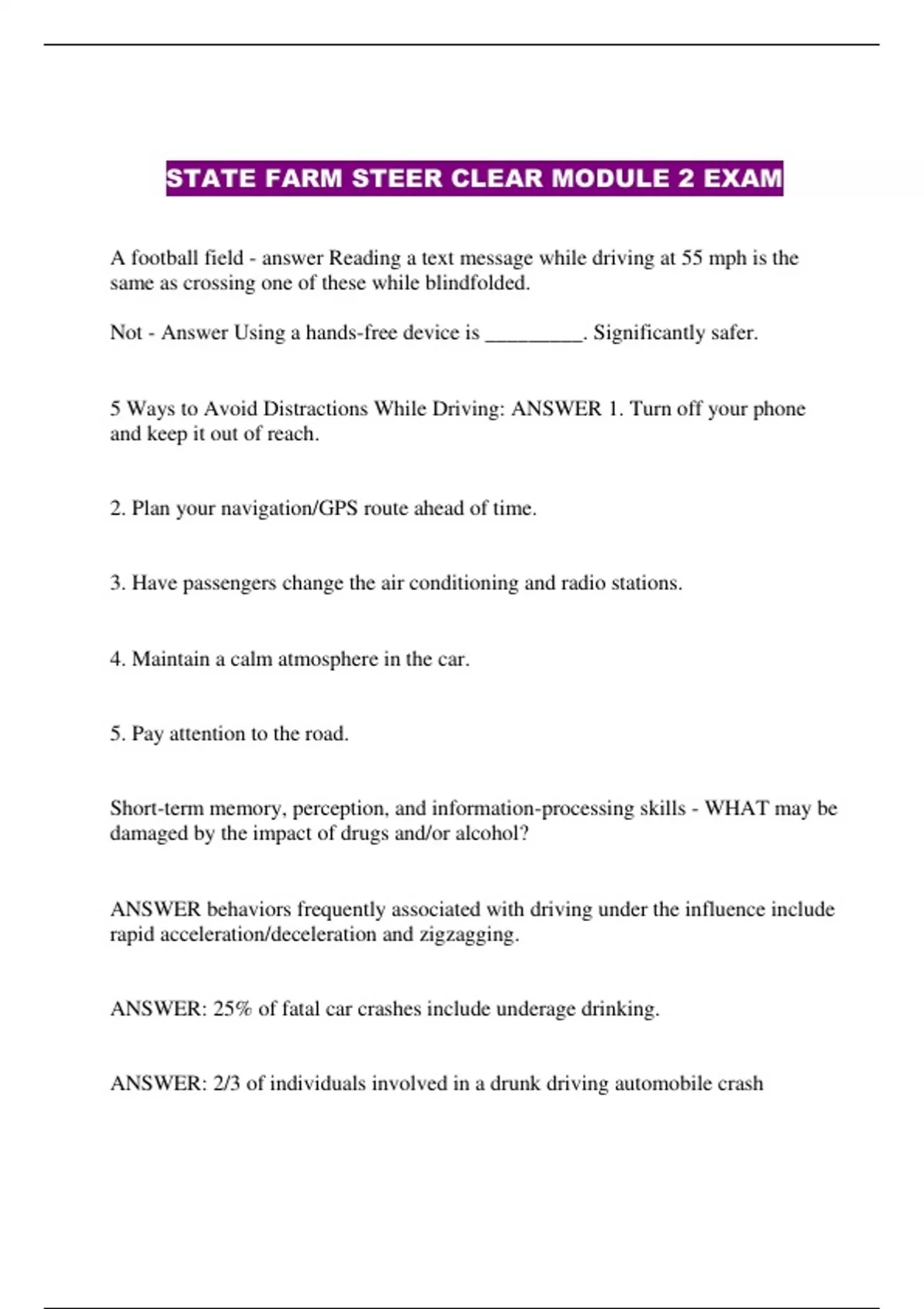 STATE FARM STEER CLEAR MODULE 2 EXAM...