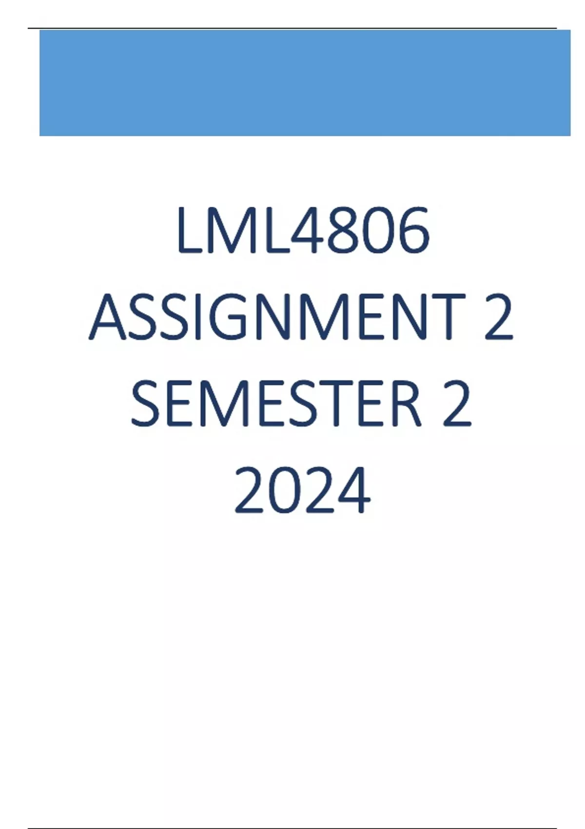 LML4806 Assignment 2 (COMPLETE ANSWERS) Semester 2 2024• • • • • • Course• Company Law - LML4806 (LML4806)• Institution• University Of South Africa• Book• Company Law