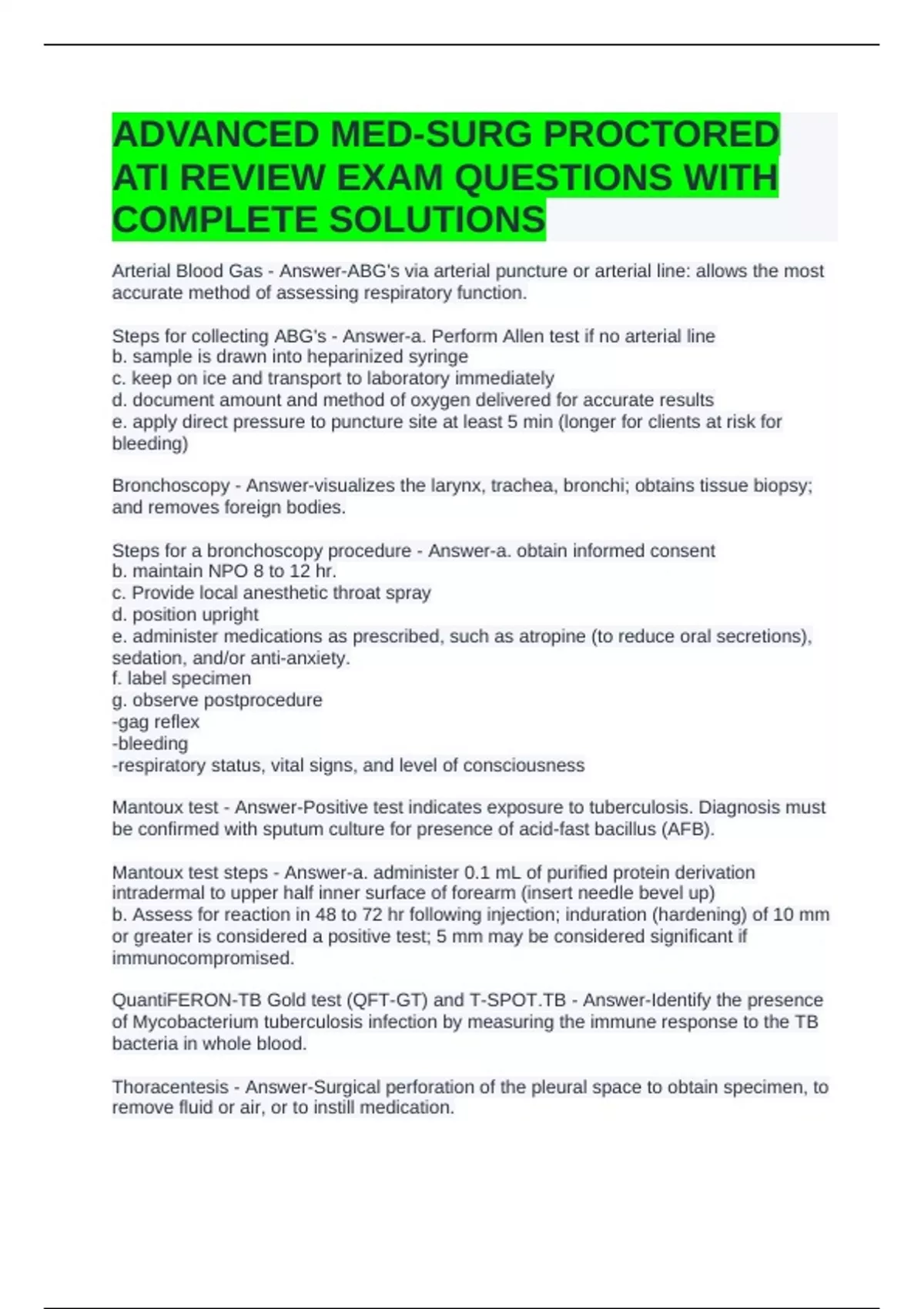 ADVANCED MED-SURG PROCTORED ATI REVIEW EXAM QUESTIONS WITH COMPLETE SOLUTIONS