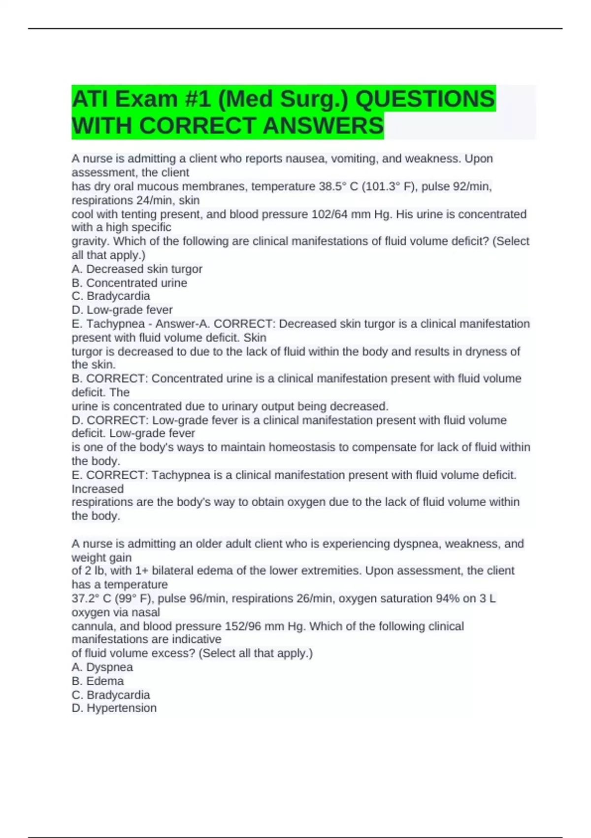 ATI Exam #1 (Med Surg.) QUESTIONS WITH CORRECT ANSWERS