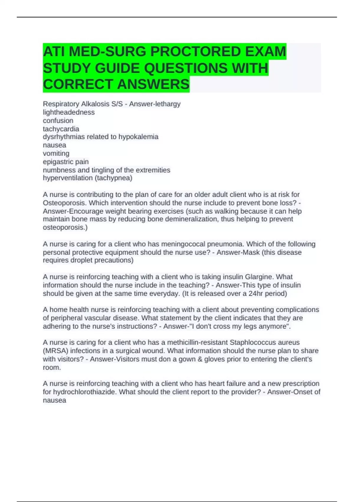 ATI MED-SURG PROCTORED EXAM