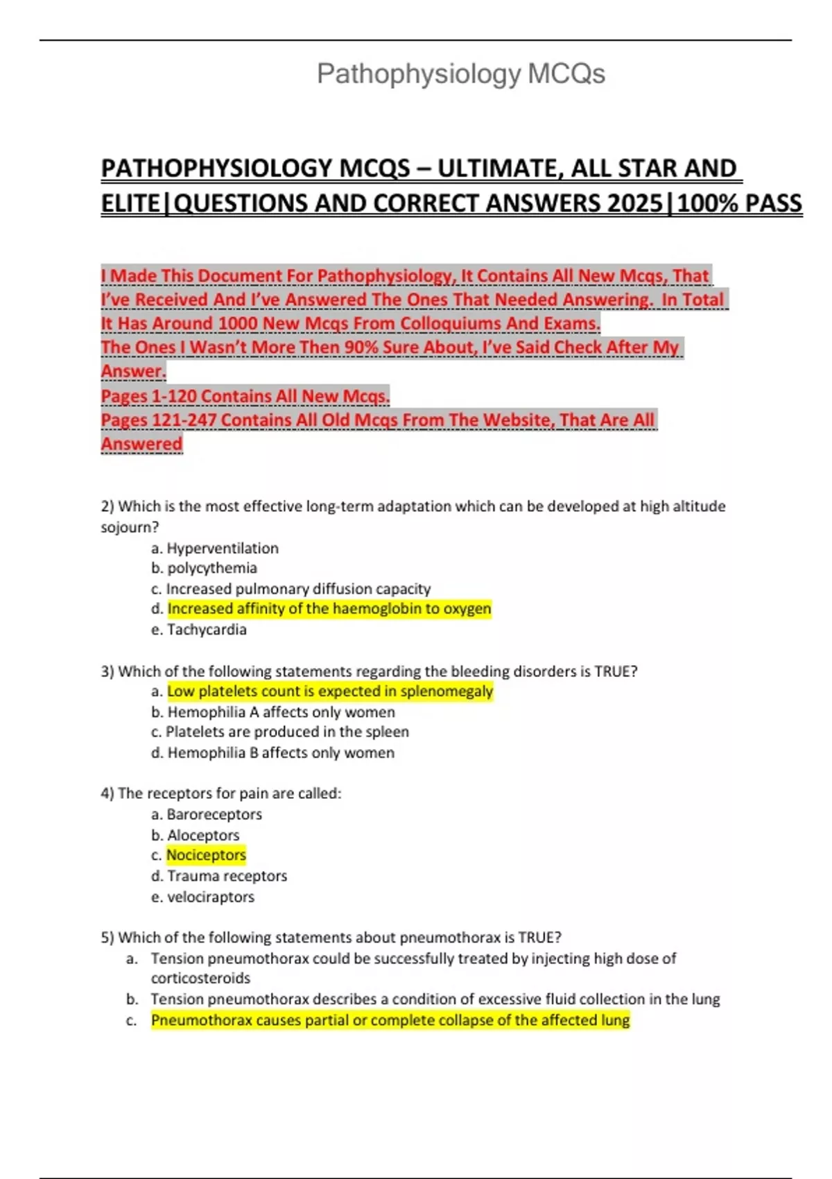 PATHOPHYSIOLOGY MCQS – ULTIMATE, ALL STAR AND