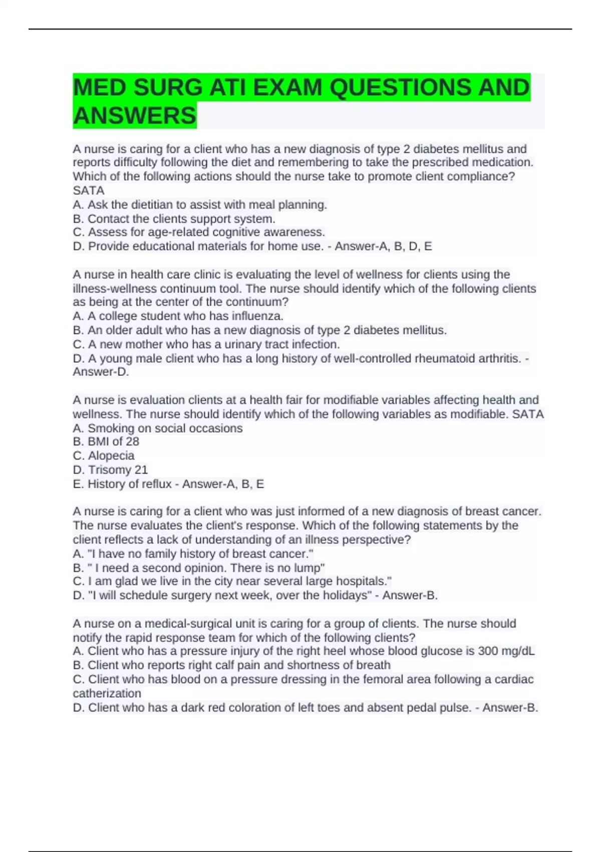 D. Client who has a dark red coloration of left toes and absent pedal pulse. - Answer-B.