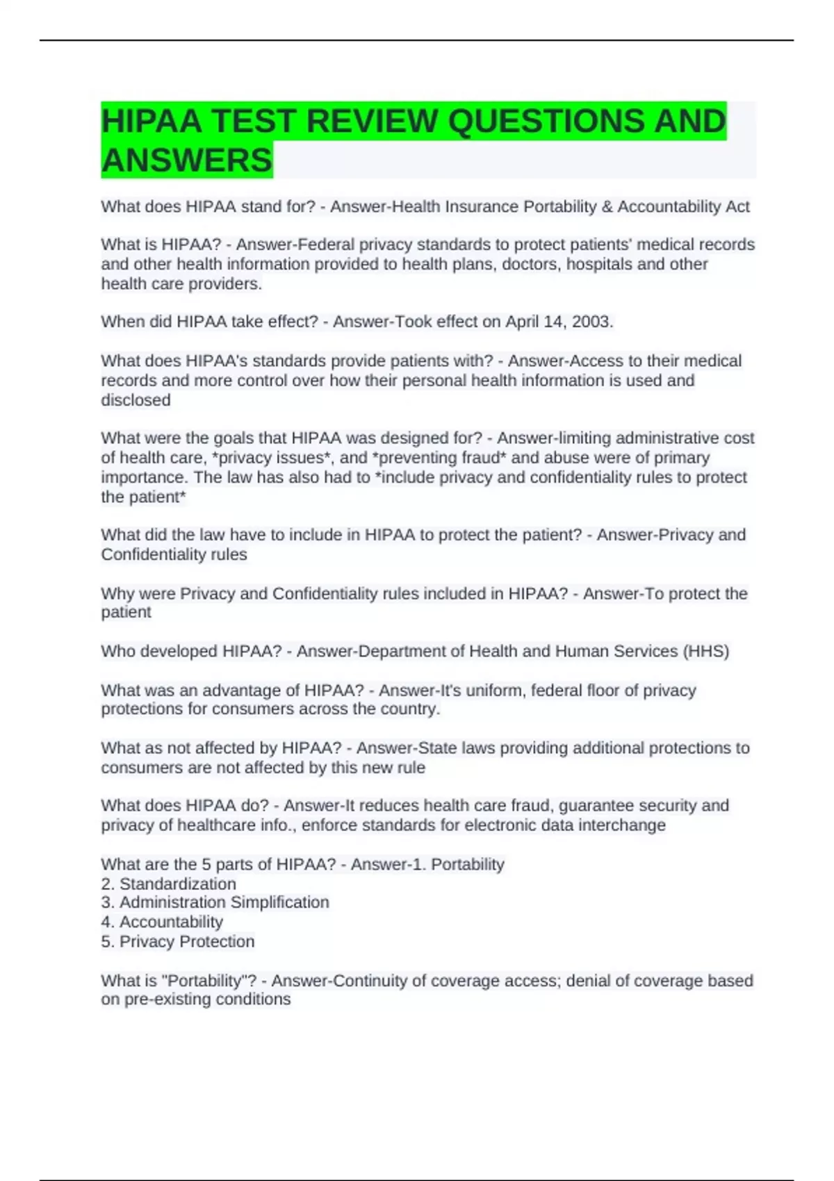 What does HIPAA do? - Answer-It reduces health care fraud, guarantee security and