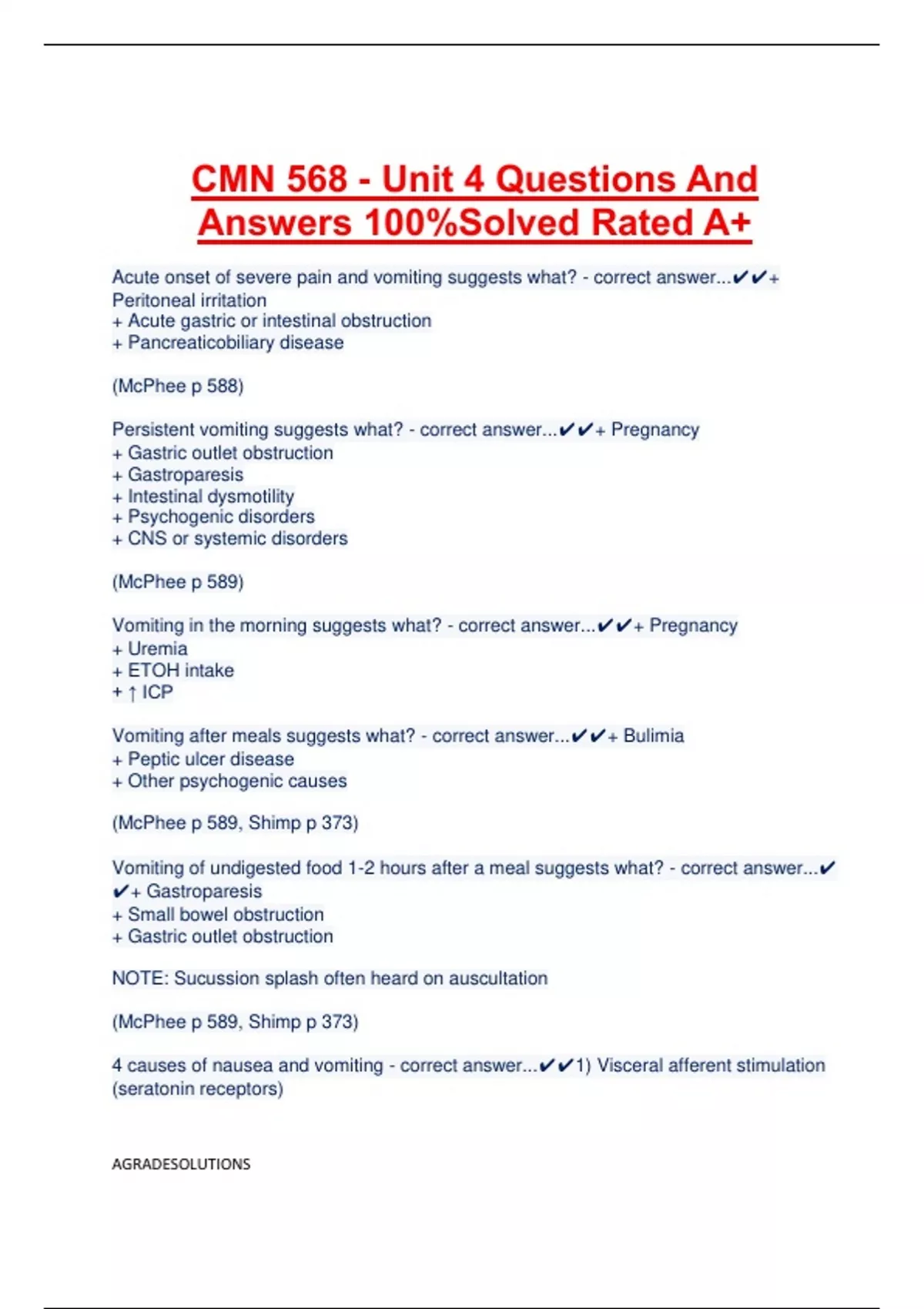 Common causes of vomiting in infants - correct answer...✔✔1) Any acute illness (esp