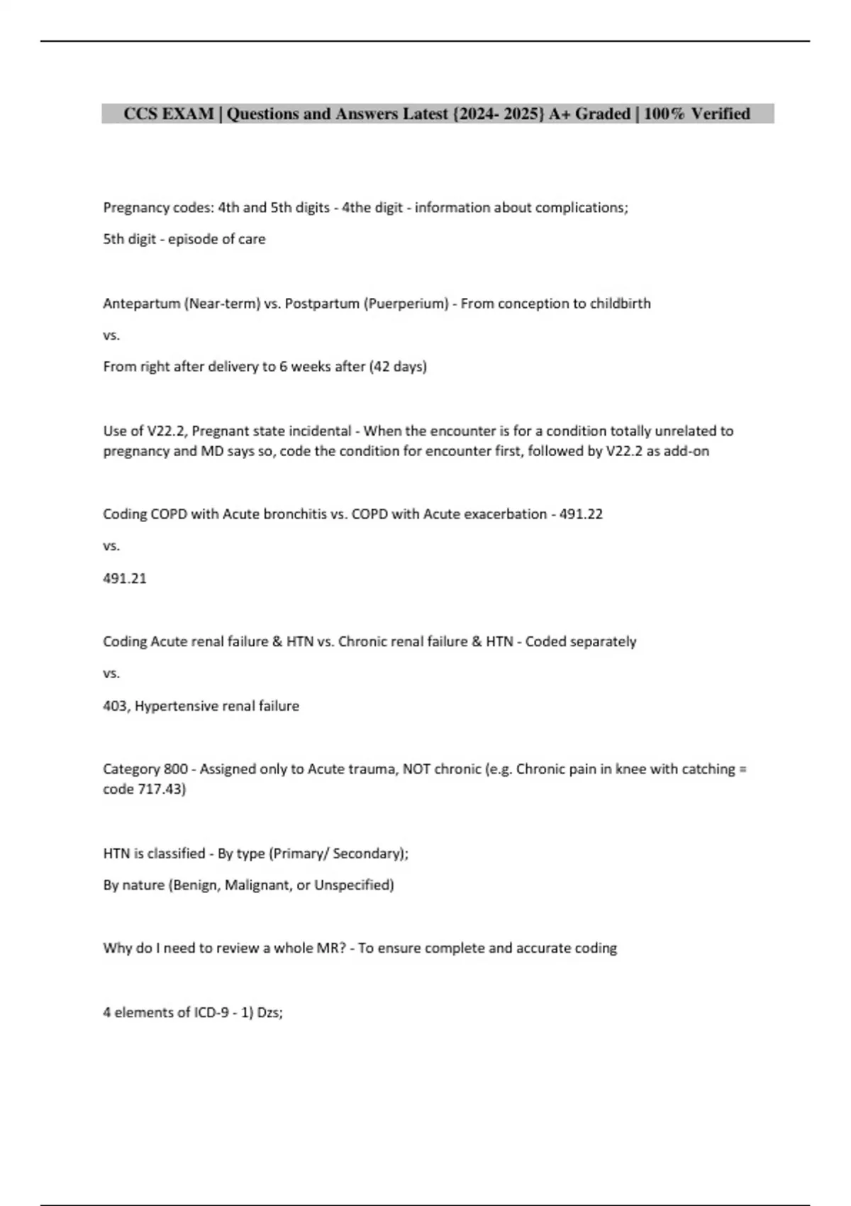 CCS EXAM | Questions and Answers Latest {2024- 2025} A+ Graded | 100% Verified