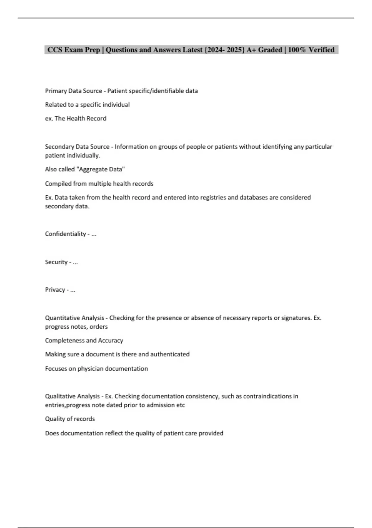 CCS Exam Prep | Questions and Answers Latest {2024- 2025} A+ Graded | 100% Verified