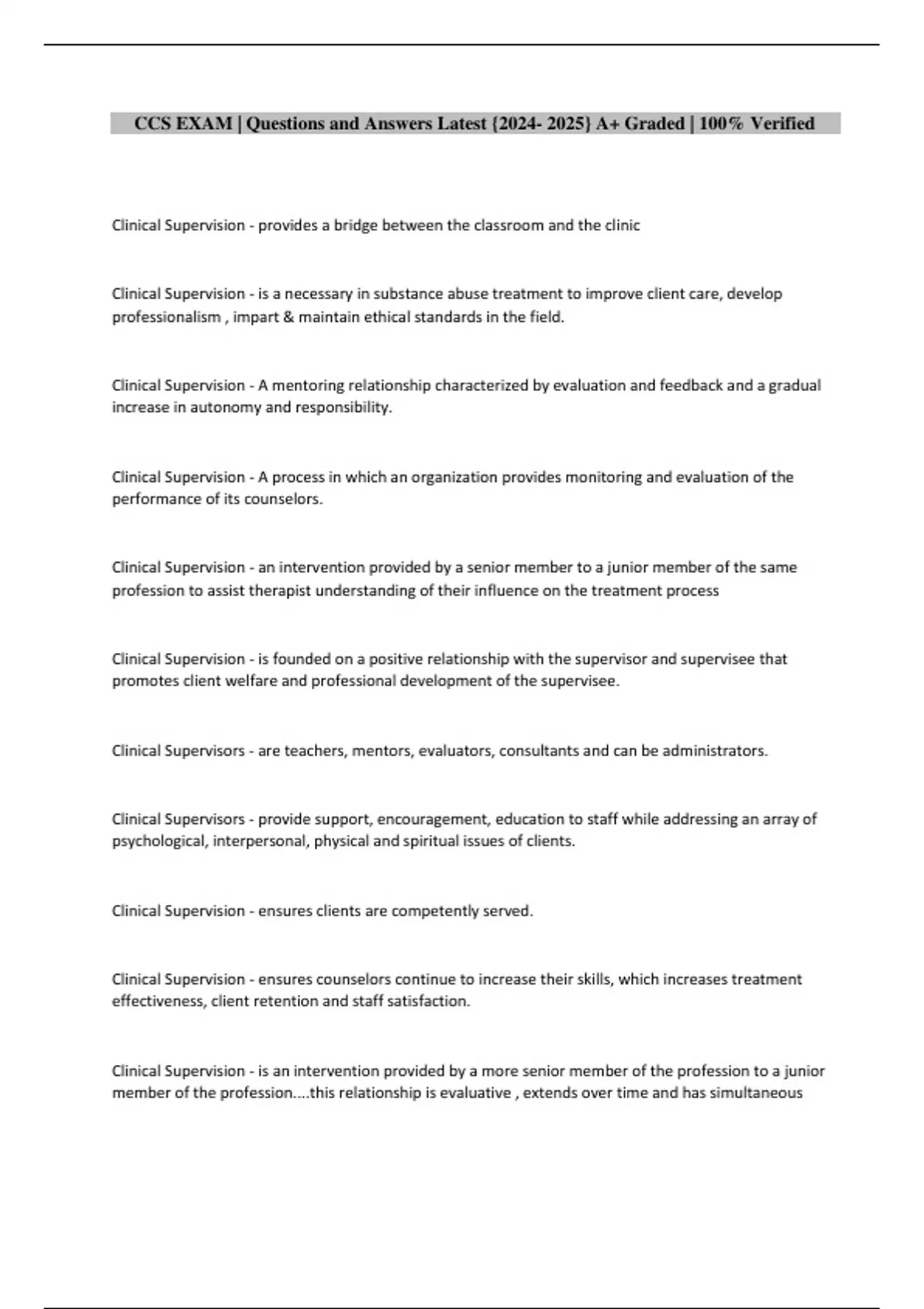 CCS EXAM | Questions and Answers Latest {2024- 2025} A+ Graded | 100% Verified