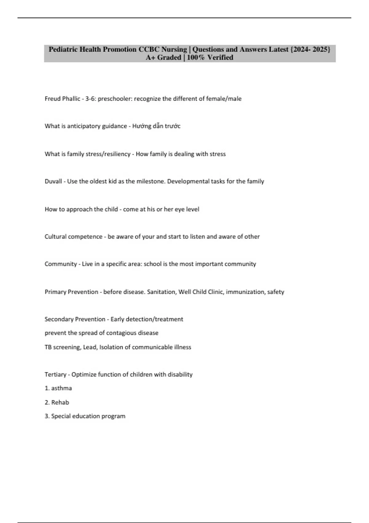 Pediatric Health Promotion CCBC Nursing | Questions and Answers Latest {} A+ Graded | 100% Verified