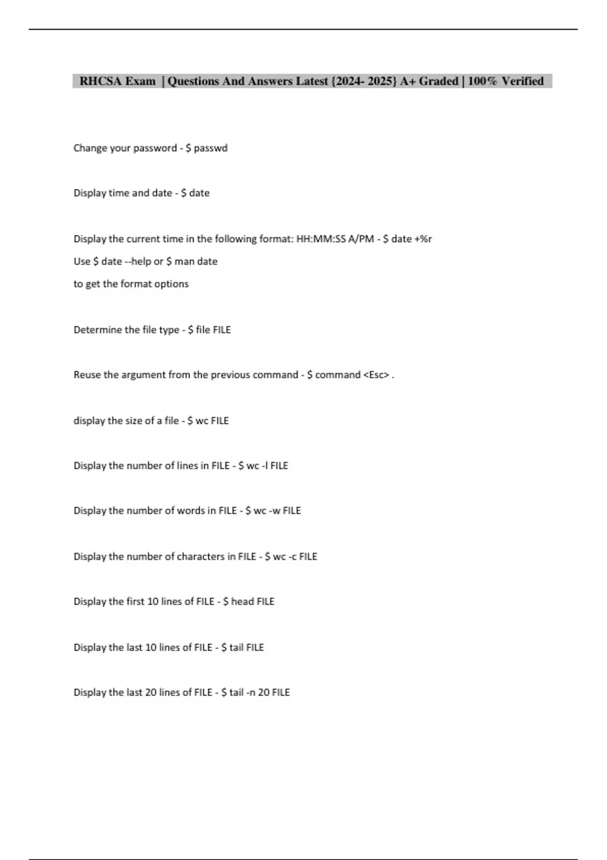 Display the last 20 lines of FILE - $ tail -n 20 FILE
