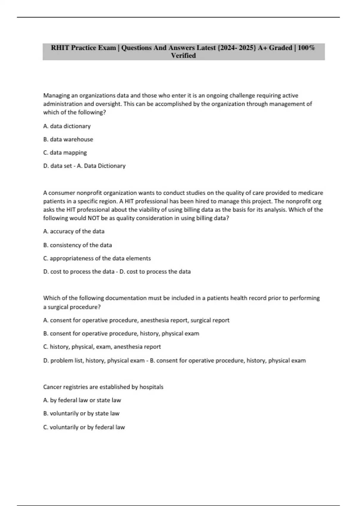 RHIT Practice Exam | Questions And Answers Latest {} A+ Graded | 100% Verified
