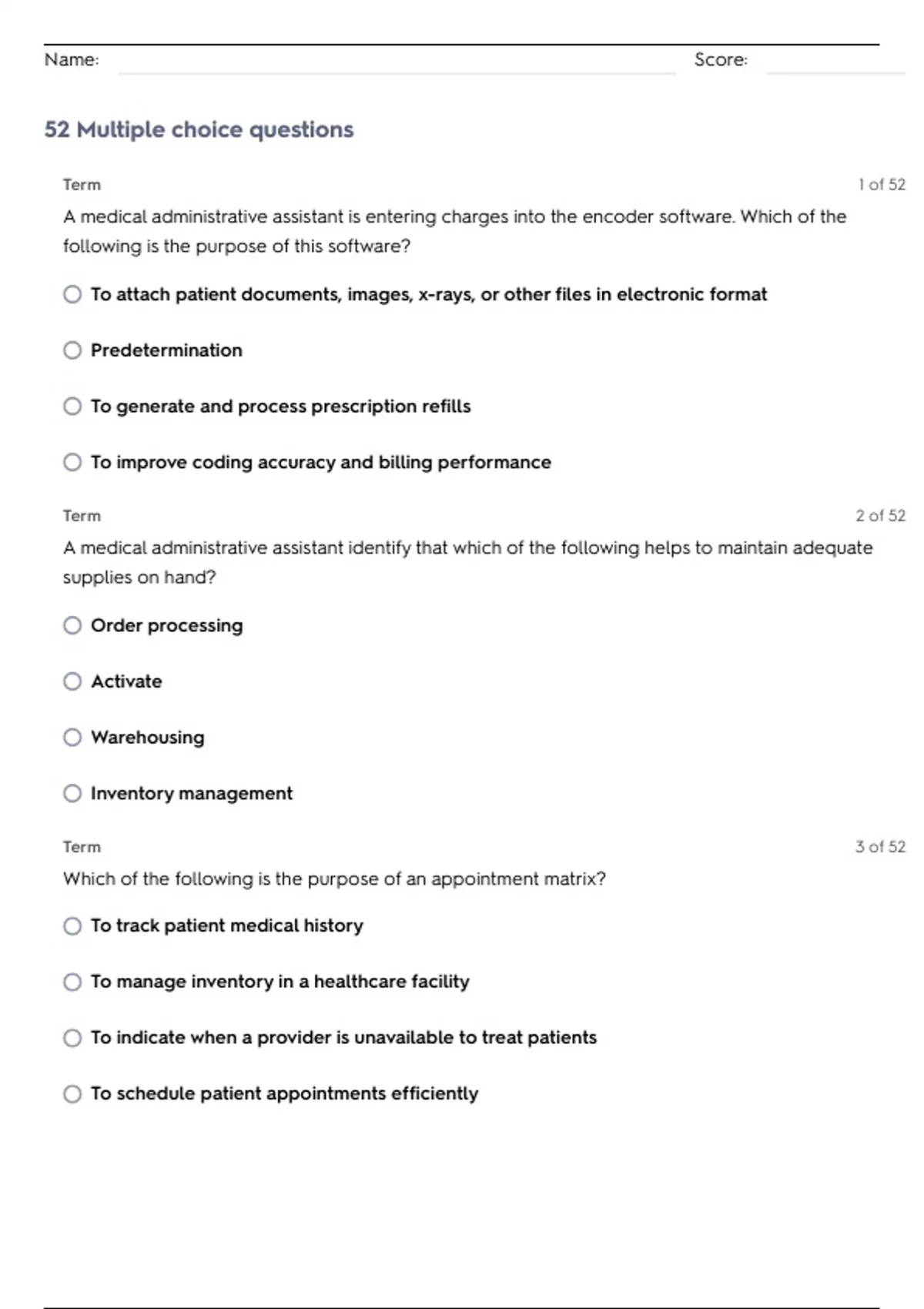 52 Multiple choice questions