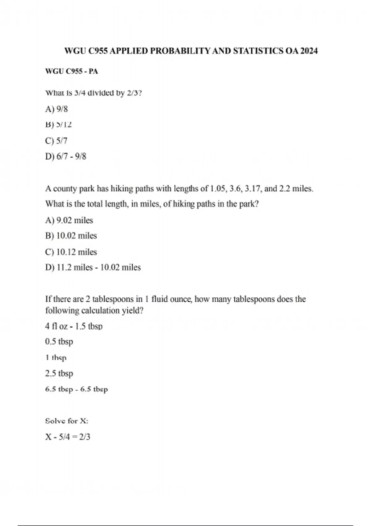 WGU C955 APPLIED PROBABILITY AND STATISTICS OA 2024