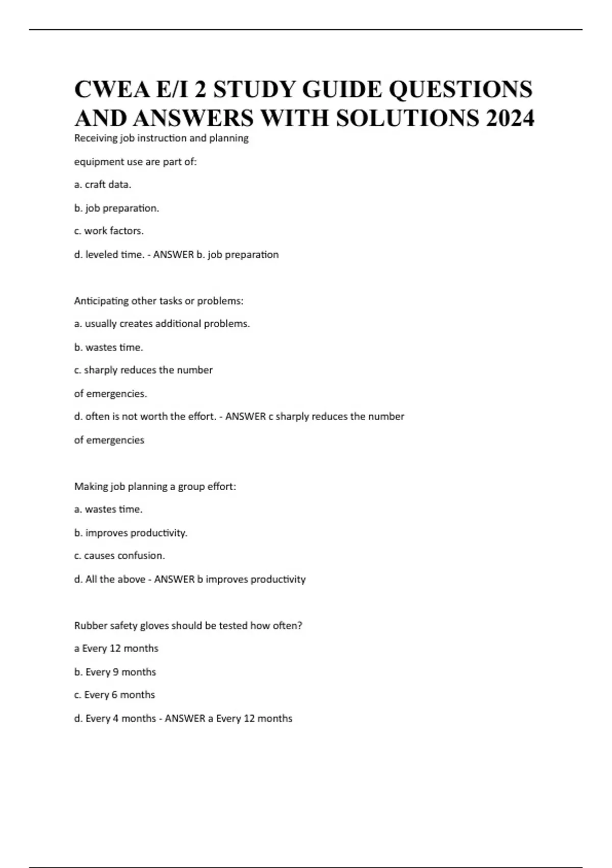 CWEA E/I 2 STUDY GUIDE QUESTIONS AND ANSWERS WITH SOLUTIONS 2024