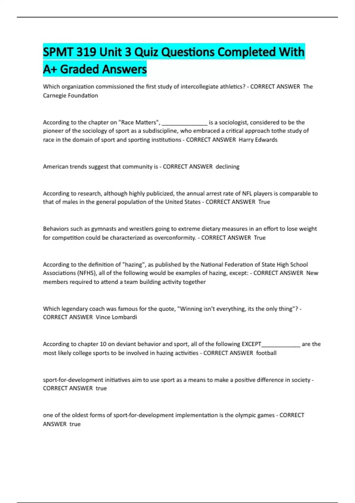 race in the domain of sport and sporting institutions - CORRECT ANSWER Harry Edwards