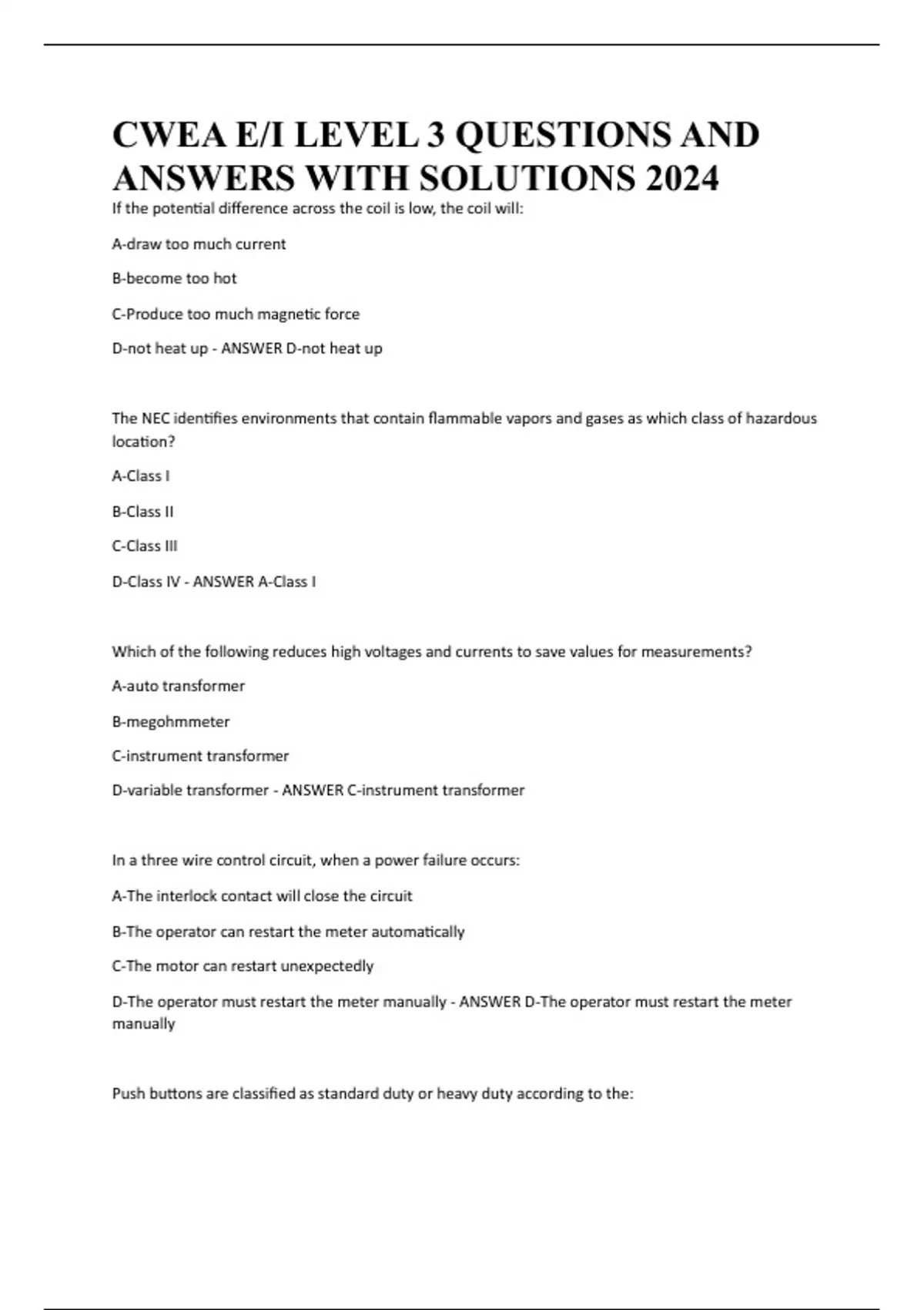 CWEA E/I LEVEL 3 QUESTIONS AND ANSWERS WITH SOLUTIONS 2024
