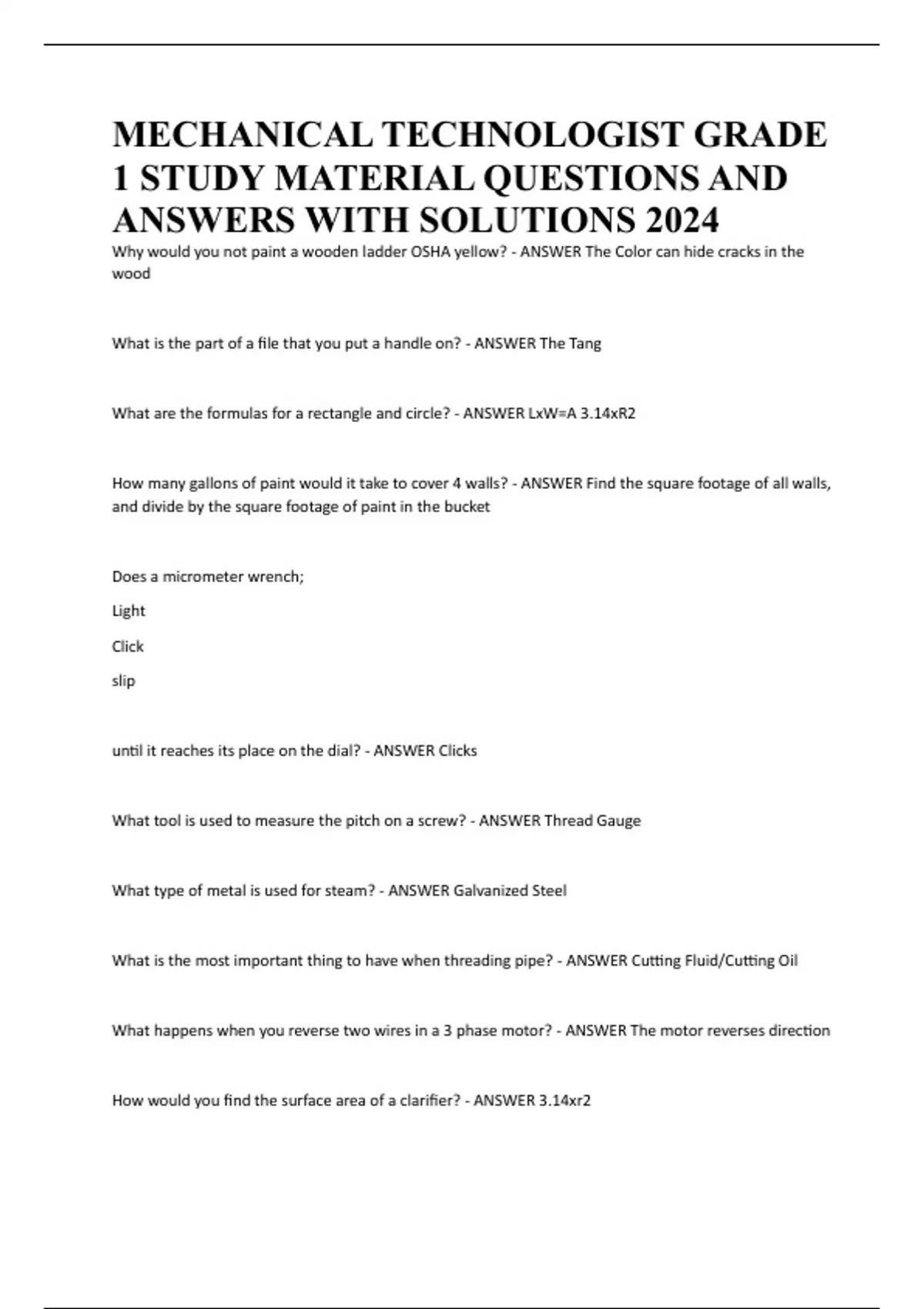 MECHANICAL TECHNOLOGIST GRADE 1 STUDY MATERIAL QUESTIONS AND ANSWERS WITH SOLUTIONS 2024