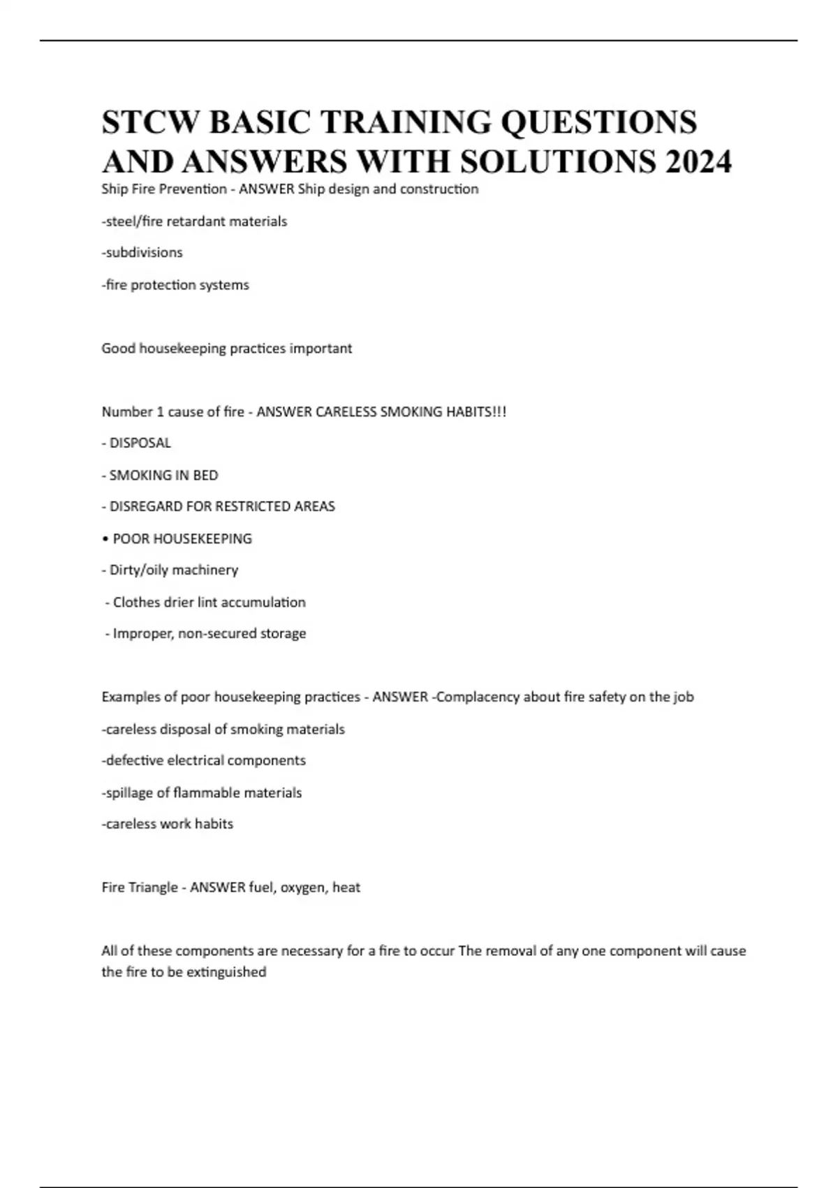 Fire Triangle - ANSWER fuel, oxygen, heat