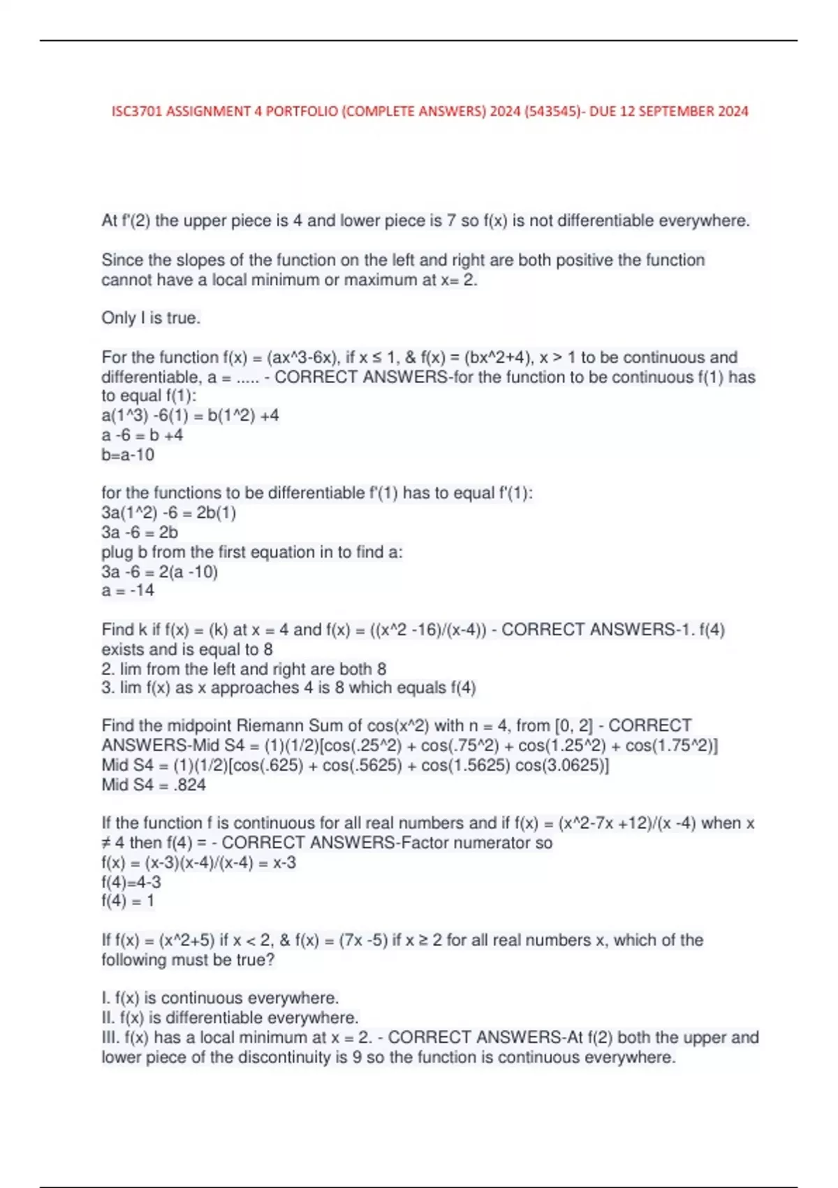 ISC3701 ASSIGNMENT 4 PORTFOLIO (COMPLETE ANSWERS) 2024 (543545)- DUE 12 SEPTEMBER 2024
