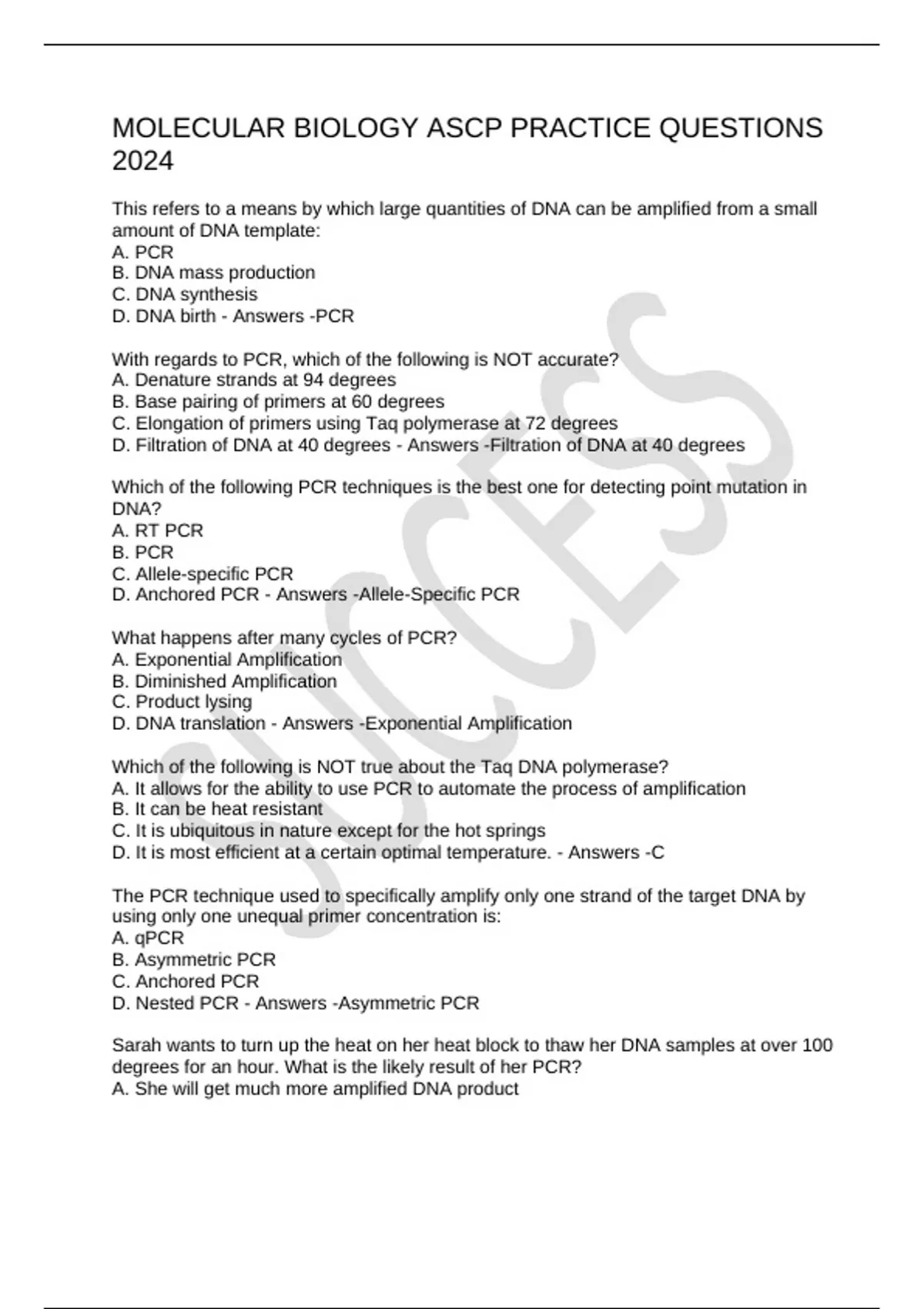 MOLECULAR BIOLOGY ASCP PRACTICE QUESTIONS